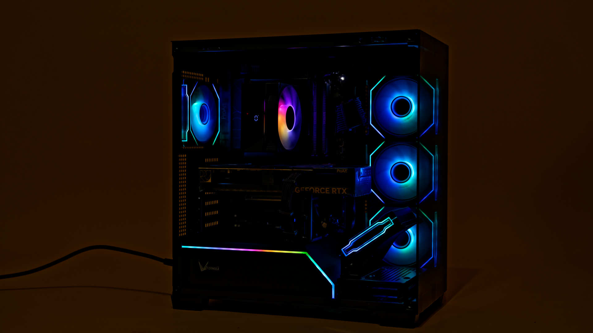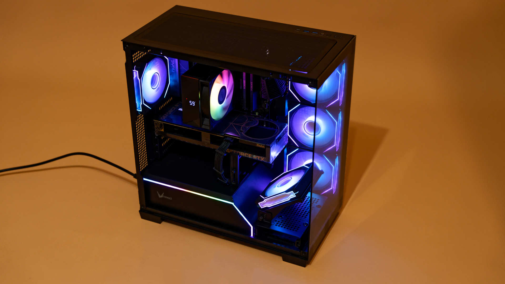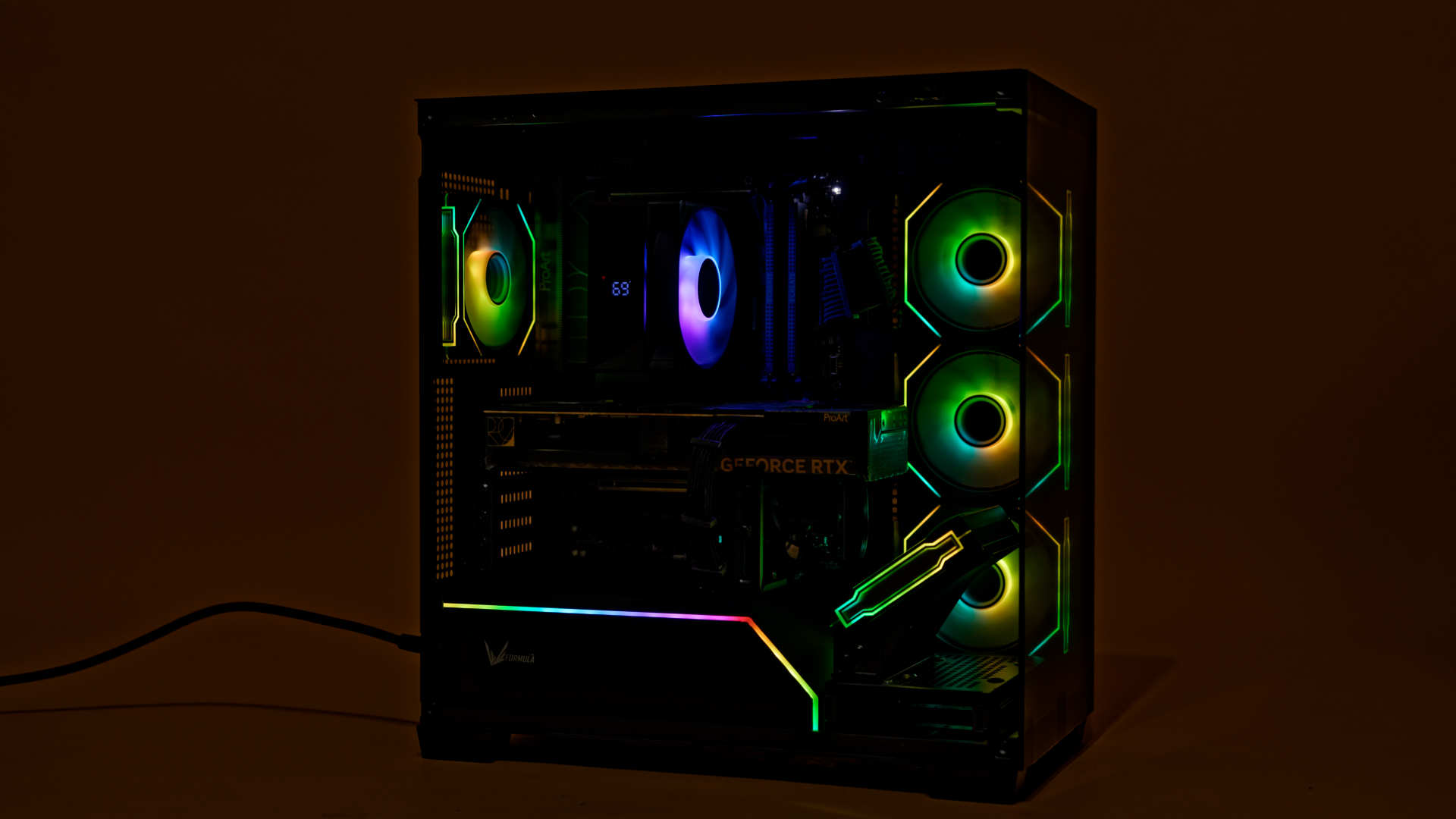 Проблем с проведением сборки в Crystal Z8G Floe не возникнет — это современный корпус с продуманной архитектурой. Что же касается подсветки, то она предусмотрена на вентиляторах и кожухе блока питания. Оценить её предлагаю по фотографиям готовой системы.