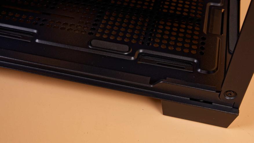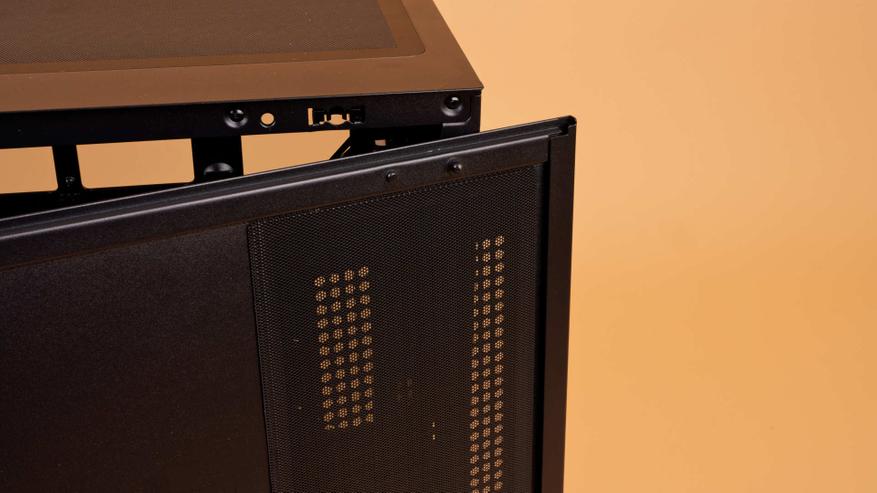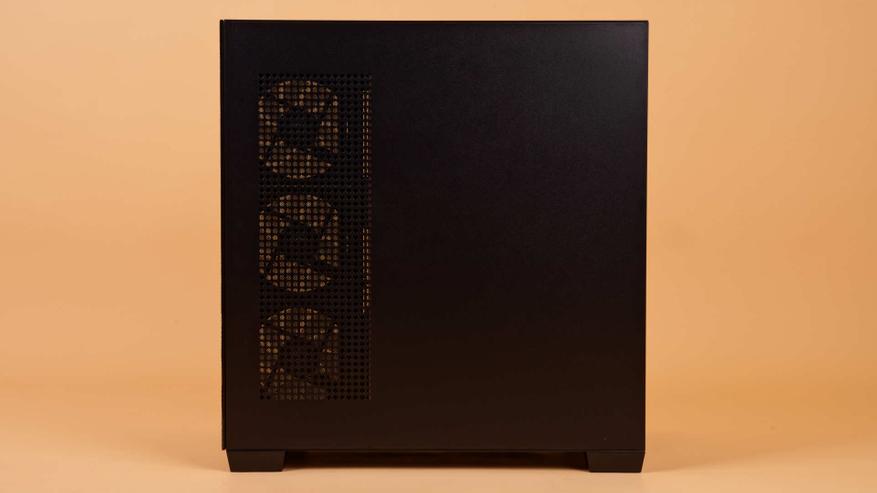 Боковая панель с правой стороны выполнена из листового металла. Методом штамповки на ней сформированы рёбра жёсткости, которые также выполняют функцию направляющих. Ближе к передней панели на этой стороне расположены вентиляционные отверстия, прикрытые пылевым фильтром, установленным с тыльной стороны панели. Через данные отверстия просматриваются вентиляторы, находящиеся рядом с посадочным местом материнской платы.