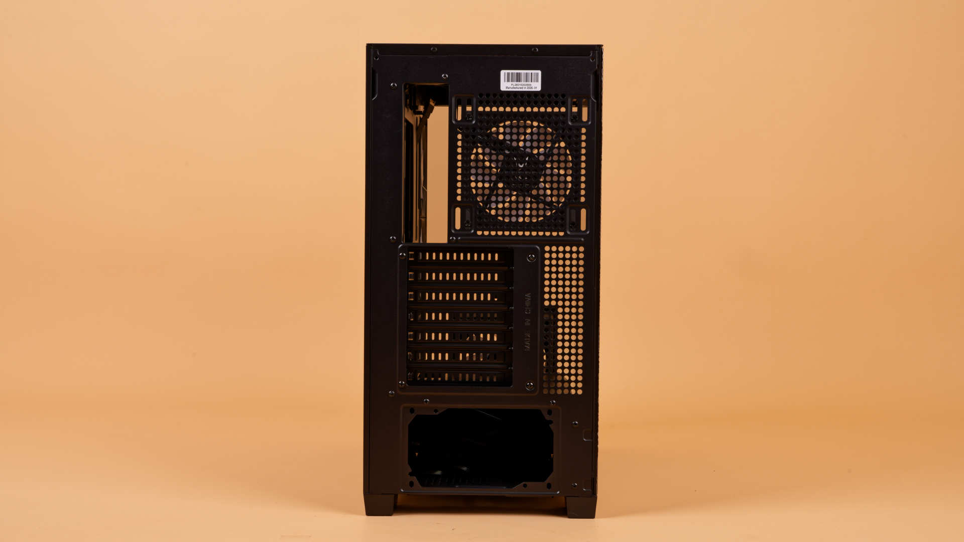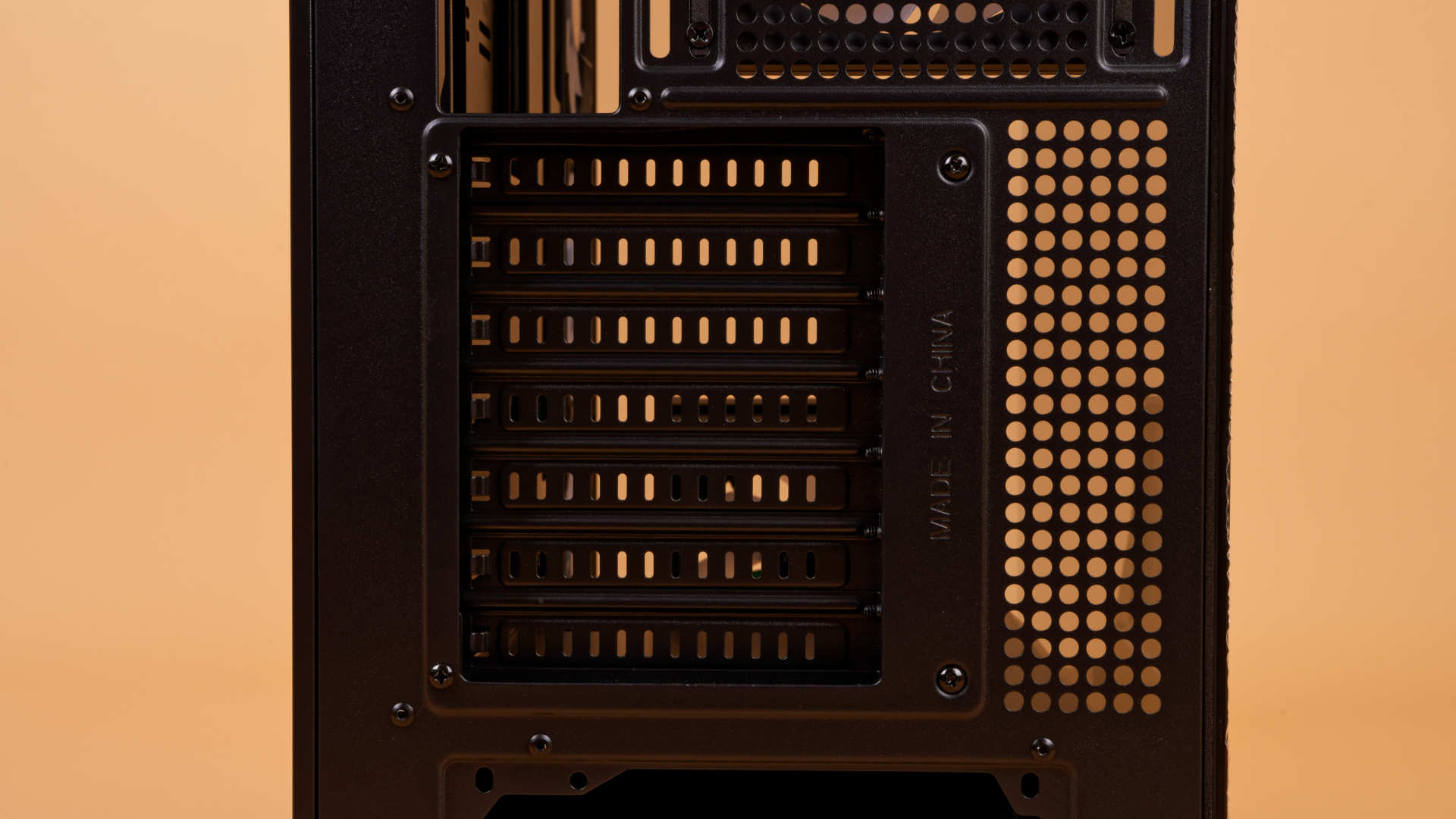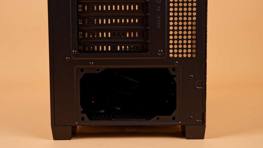 Тыльная сторона корпуса Crystal Z8G Floe представляет собой компоновку всех вырезов и отверстий с учетом расположения блока питания в нижней части корпуса.