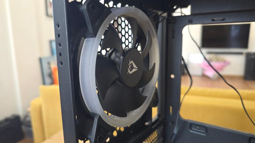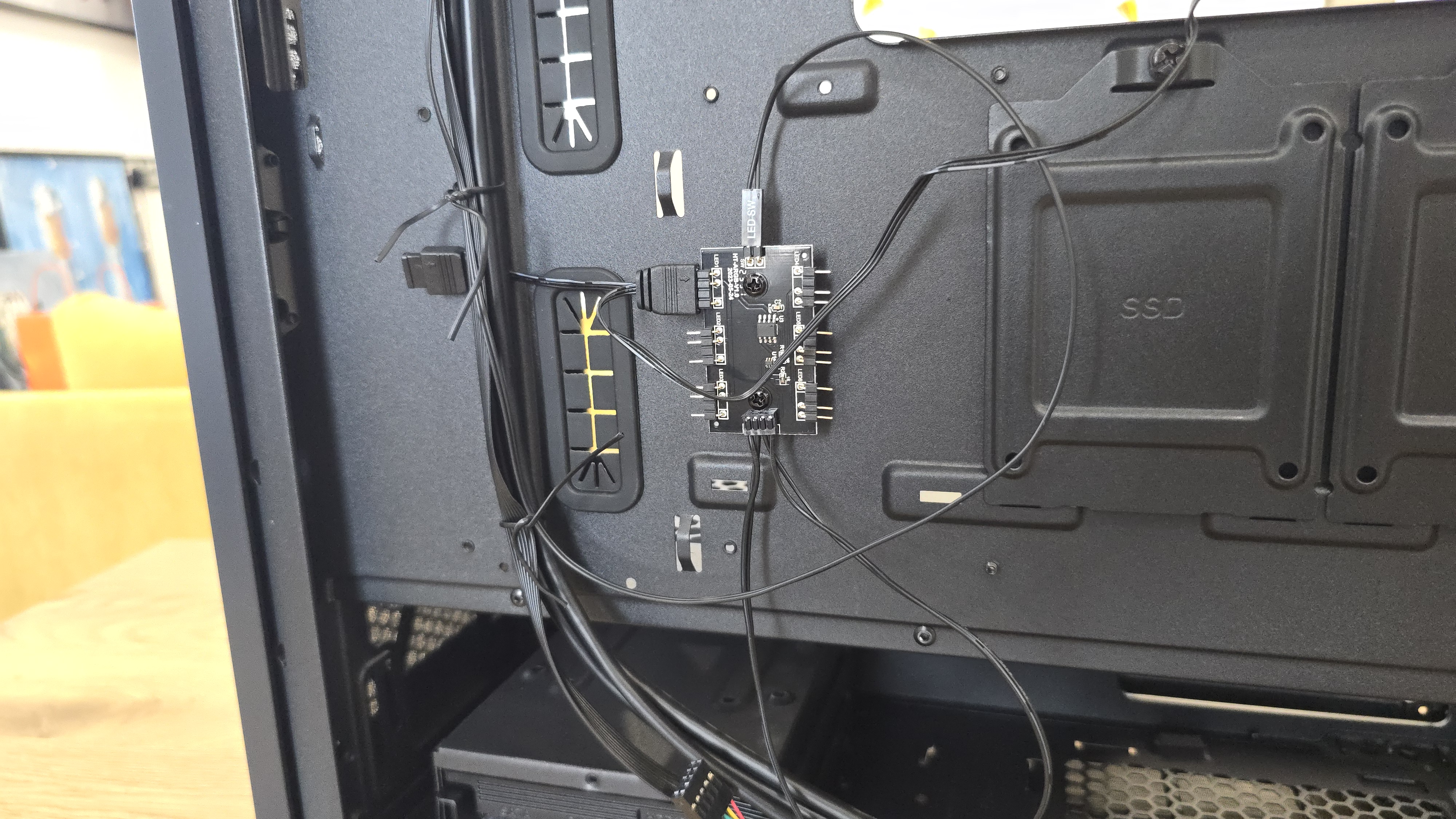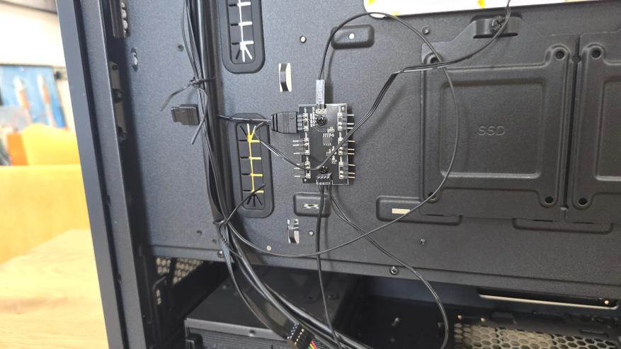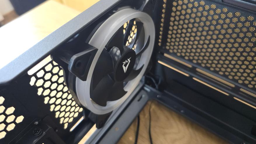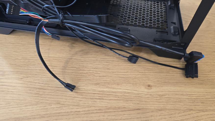 Также здесь установлена плата управления 5V ARGB с шестью разъемами и питанием от SATA. Подсветка может работать автономно через кнопку на панели либо синхронизироваться с материнской платой. Это упрощает сборку системы без сложной разводки дополнительных контроллеров.