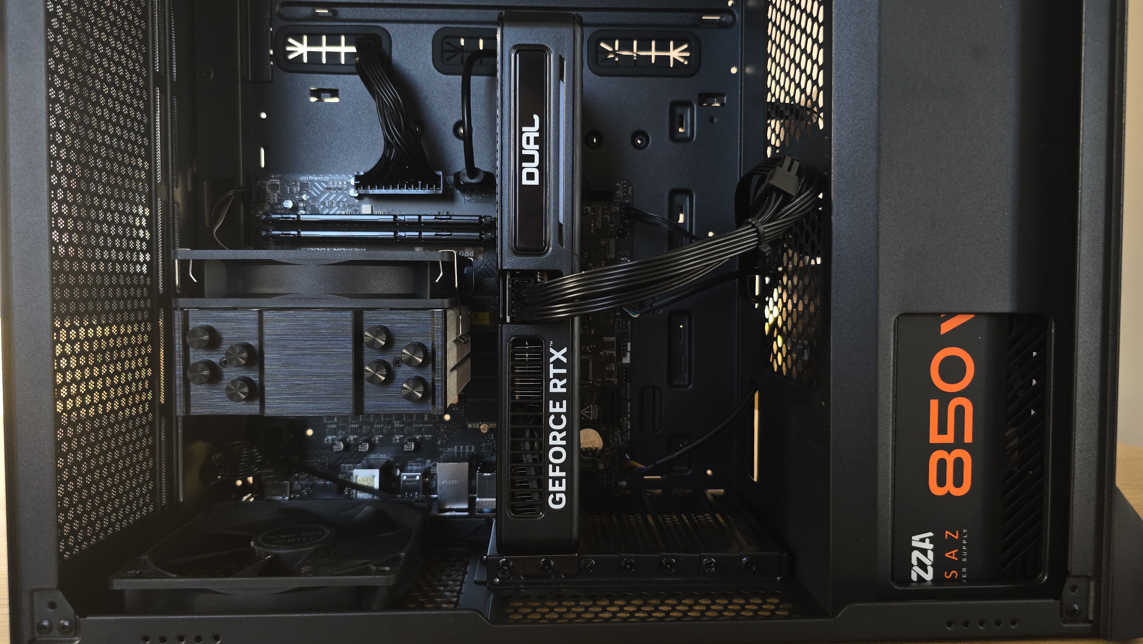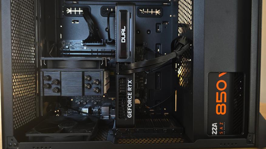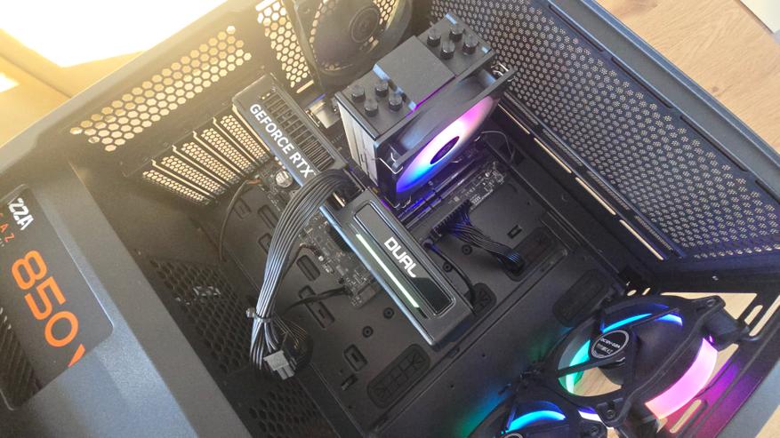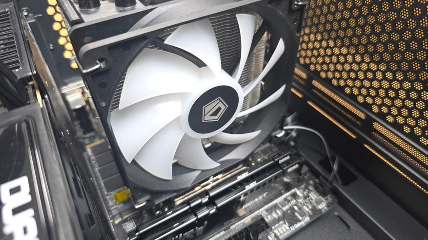 Оценку реальной компоновки в корпусе проводил на основе готового компьютера iRU Tactio 510B7GP. В системе используется процессор Intel Core i5-14400F, материнская плата формата micro-ATX MSI PRO B760M-E, видеокарта Palit GeForce RTX 5060 Ti Dual, башенный кулер ID-COOLING SE-224-XTS ARGB и блок питания AZZA PSAZ-850G.