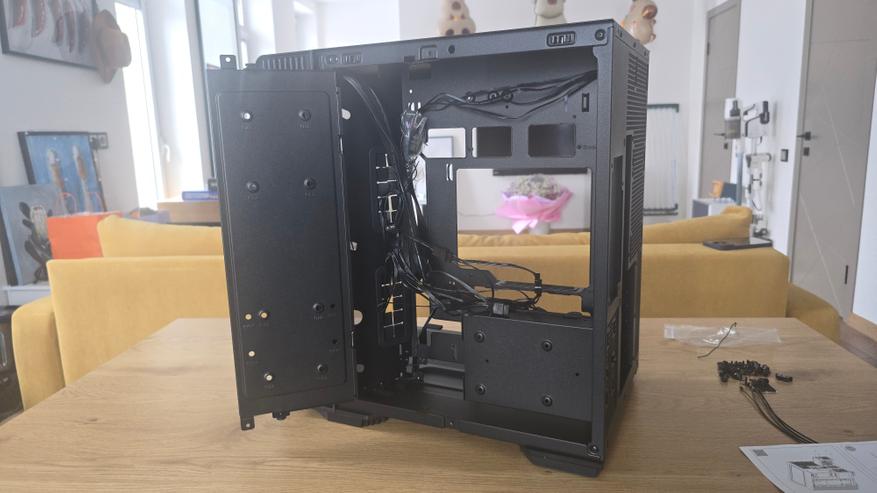 За этой панелью остается достаточно пространства для укладки кабелей. Благодаря этому можно аккуратно спрятать проводку блока питания и кабели питания комплектующих.