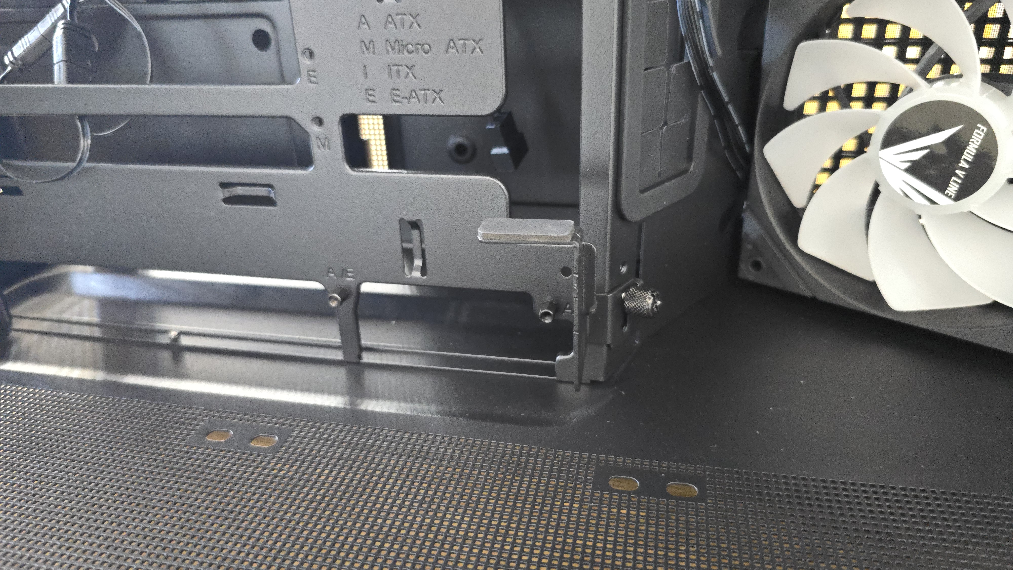 Отдельно стоит отметить наличие штатной подпорки для видеокарты. Она закреплена на нижней части каркаса и предназначена для поддержки тяжелых графических адаптеров, чтобы предотвратить их провисание.