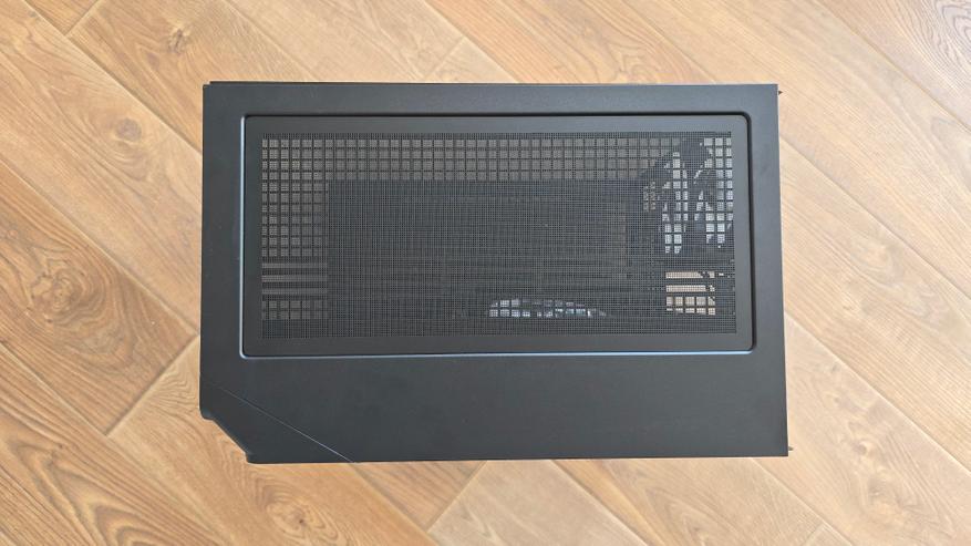 Верхняя часть шасси выполнена в виде широкой панели с развитой перфорацией, занимающей почти всю поверхность крышки. Снаружи она закрыта съемной магнитной сеткой, которая легко отделяется без инструментов и обеспечивает быстрый доступ к внутренней зоне установки охлаждения. Под этой панелью расположена монтажная площадка, рассчитанная на установку элементов системы вентиляции. Здесь могут размещаться три 120-мм вентилятора или пара 140-мм моделей. Кроме того, конструкция корпуса допускает установку радиатора системы жидкостного охлаждения формата до 360 мм.
