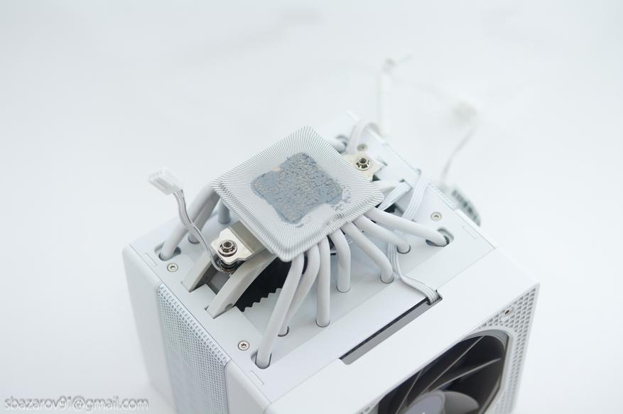 Если и этого мало, то можно установить дополнительную рамку на 120-миллиметровый радиатор (винты идут в комплекте). Забегу наперед и скажу, что даже в тихом режиме Assassin VC Elite WH отлично справляется с рассеиванием 100 Ватт от AMD Ryzen 7 5700X3D, оставаясь при этом практически бесшумным. Поэтому наличие рамки и возможность установки третьего вентилятора будет излишним. Что касается максимальной мощности рассеивания, то она может достигать 280+ Вт (TDP) для высокопроизводительных процессоров.