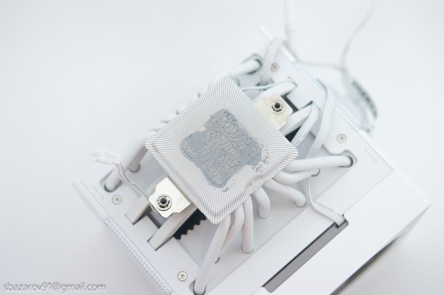 Что касается самого теплообменника, то он медный, а его верхняя часть выполнена из алюминиевого сплава. Корпус переднего вентилятора и вставка в центральной части — пластиковые.