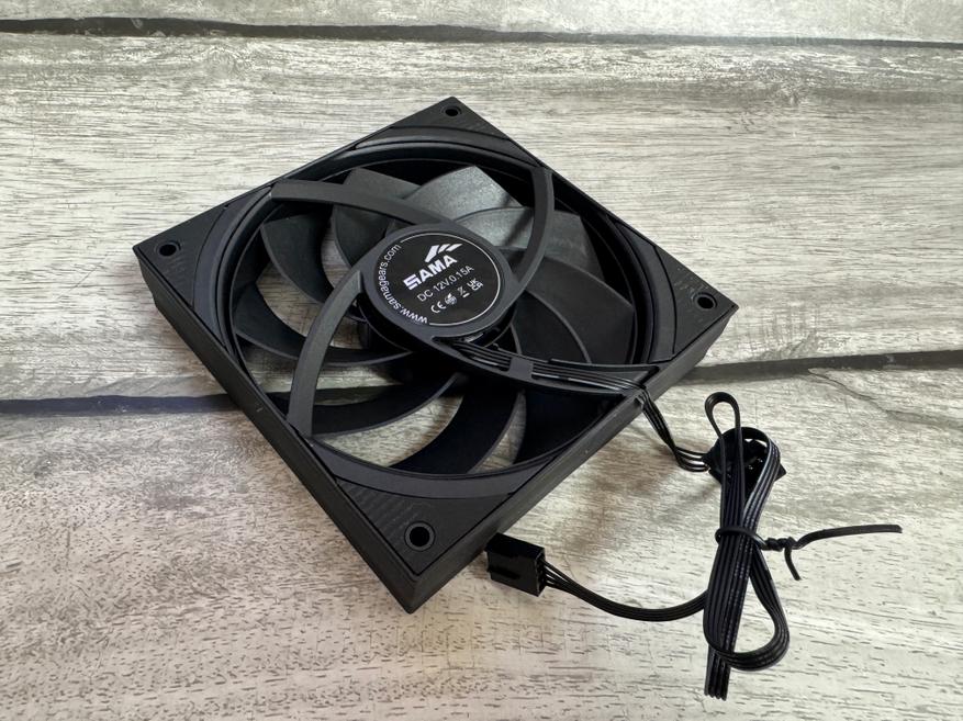 Крыльчатка вентилятора имеется 9 сильно изогнутых лопастей, которые должны обеспечивать хороший воздушный поток для охлаждения радиатора. На оборотной части имеется информационная наклейка с фирмой производителя, адресом официального сайта. Также на наклейке мы можем увидеть некоторую техническую информацию DC 12 V -0.15 А, но без маркировки вентилятора. Кулер не имеет дисплея и светодиодной подсветки и для подключения имеется только стандартный разъем 4 PIN, благодаря которому пользователь сможет изменять обороты вентилятора от 800 до 2200 об/мин.