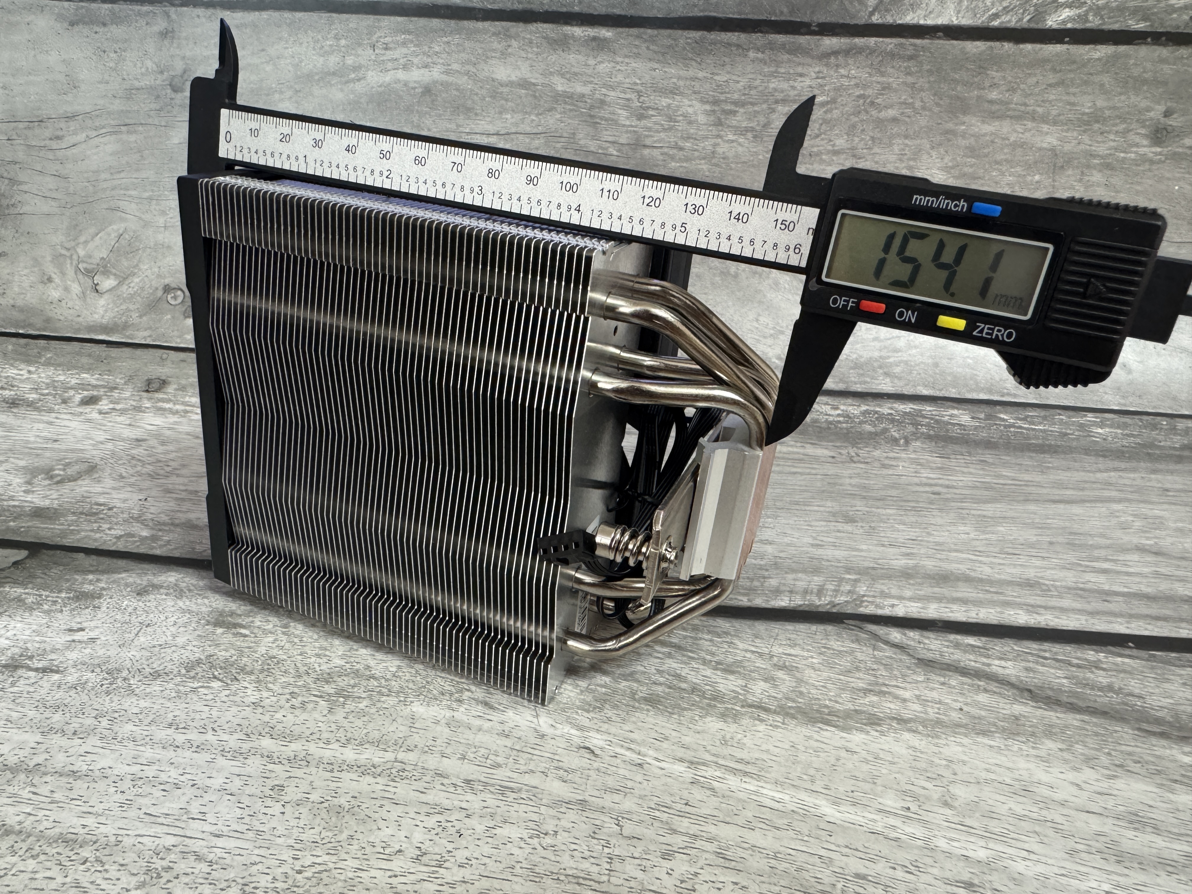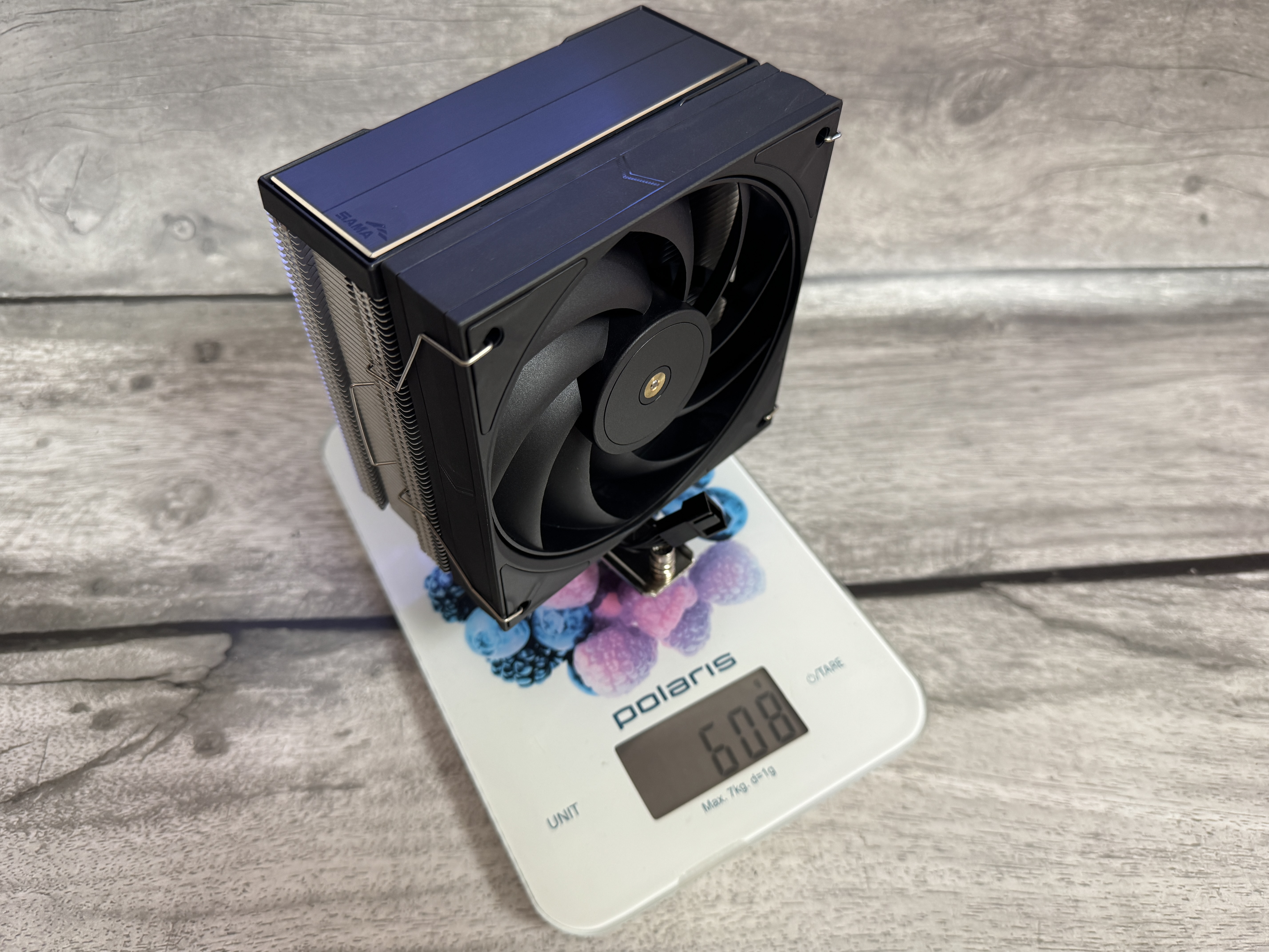 Кулер в сборе имеет вес 608 грамм. Кулер имеет следующие размеры 70 мм x 154 мм.