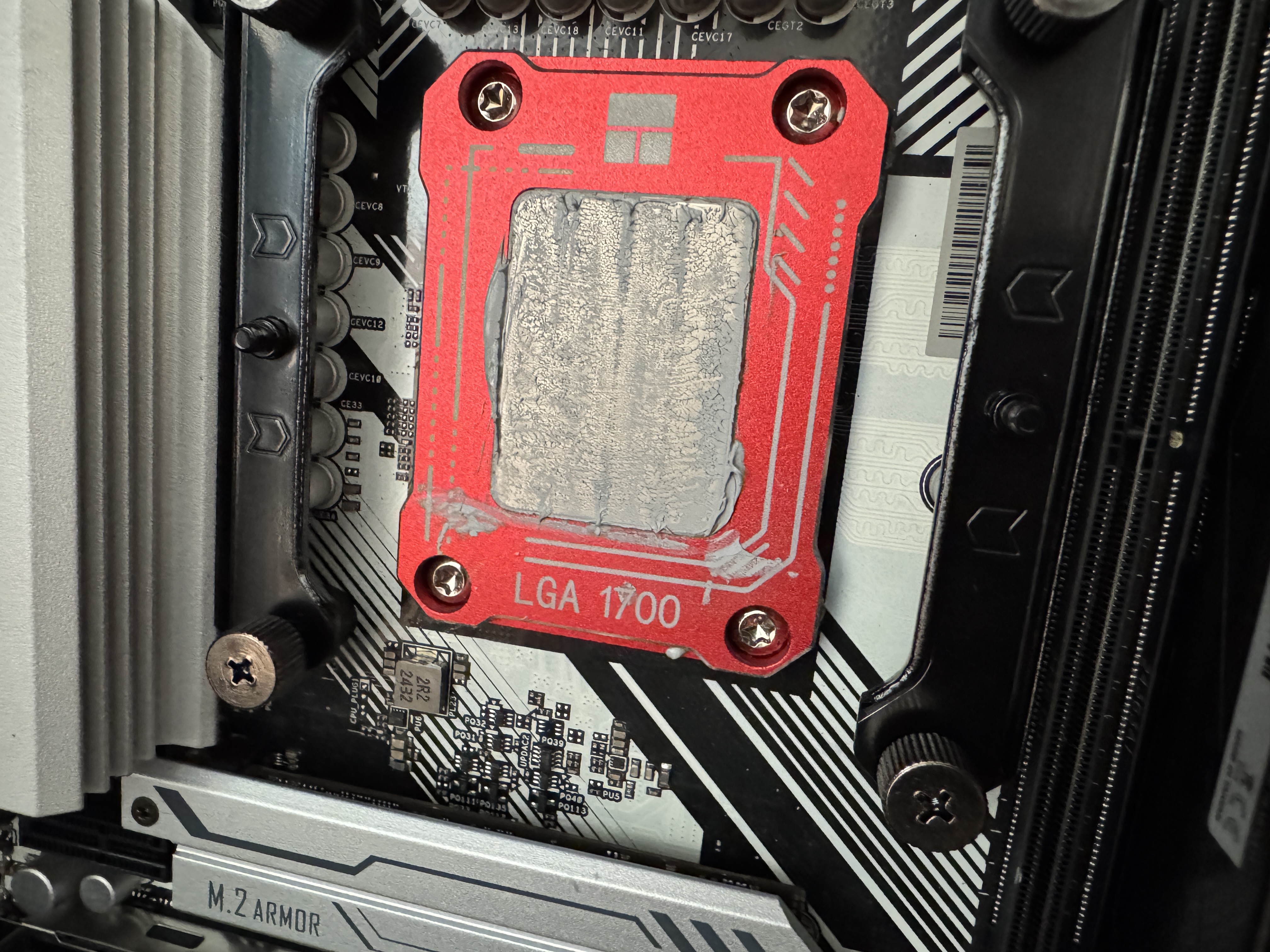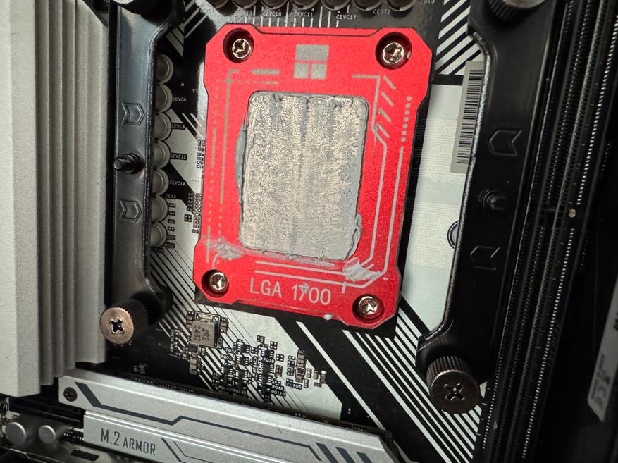 Прижим радиатора к теплораспределительной крышки процессора равномерный. Пятно контакта большое.