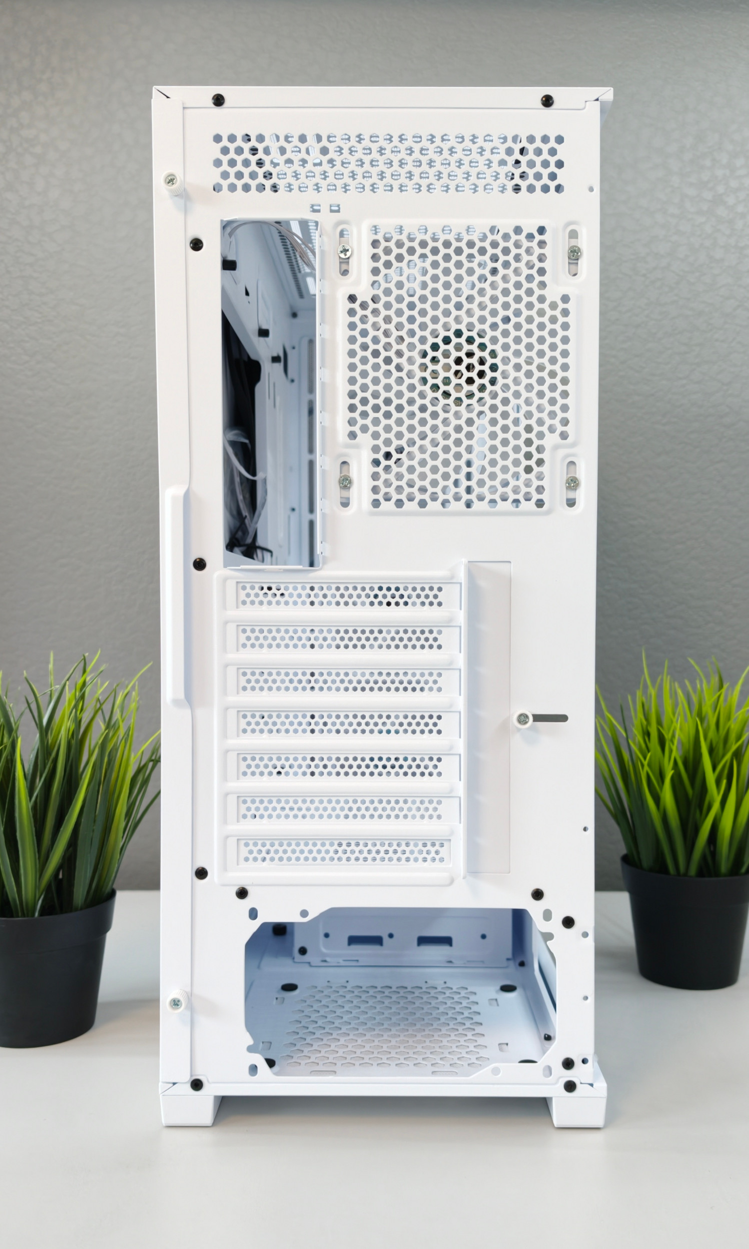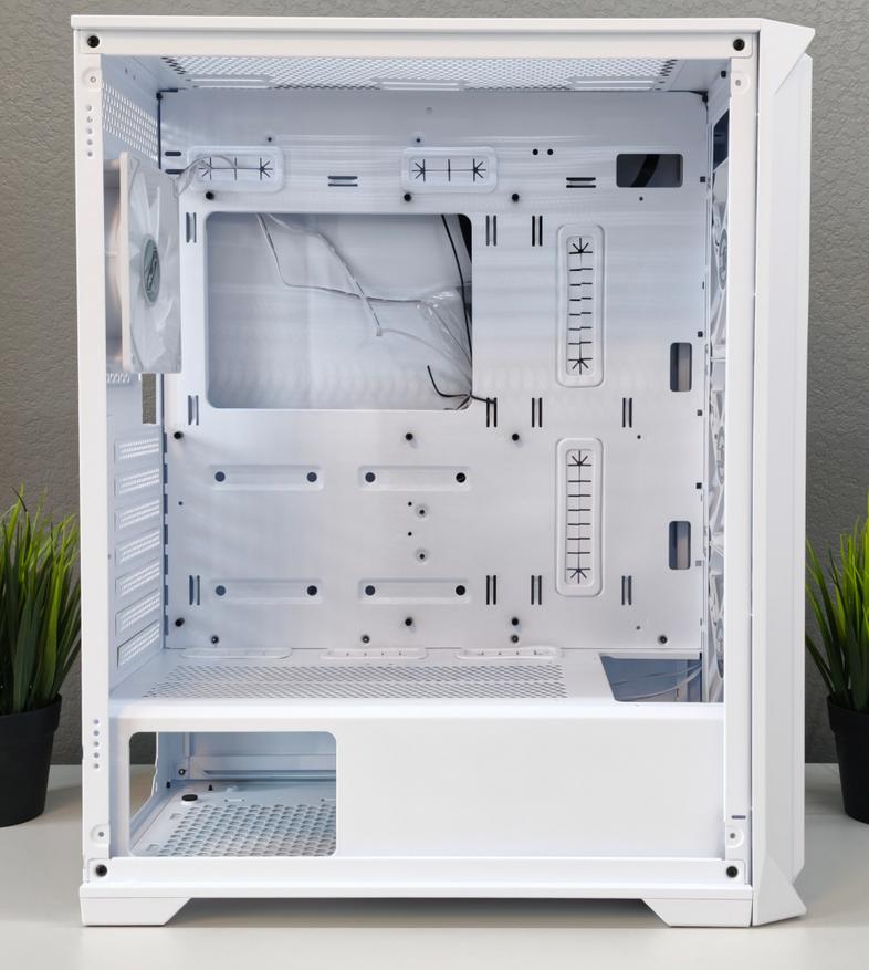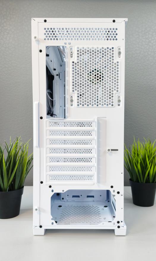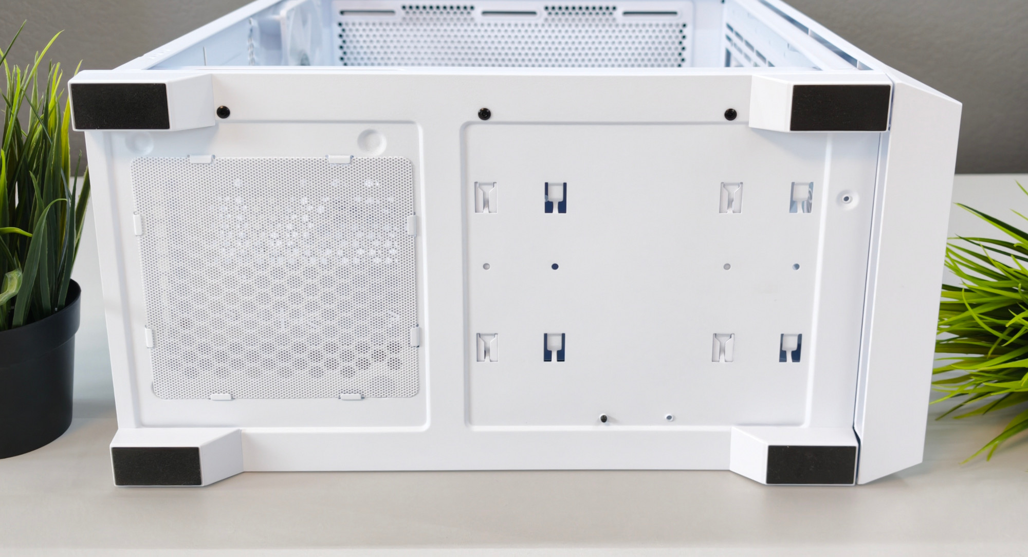 Корпус Raijintek Arcadia 41-MS4 выполнен на классическом шасси с поддержкой материнских плат форм-фактором ATX, microATX и mini-ITX. Но, если честно, здесь поместится и полноразмерная версия E-ATX. Сразу бросаются в глаза прорезиненные заглушки для кабель-менеджмента, что редко встретишь в подобном классе устройств при своей стоимости.