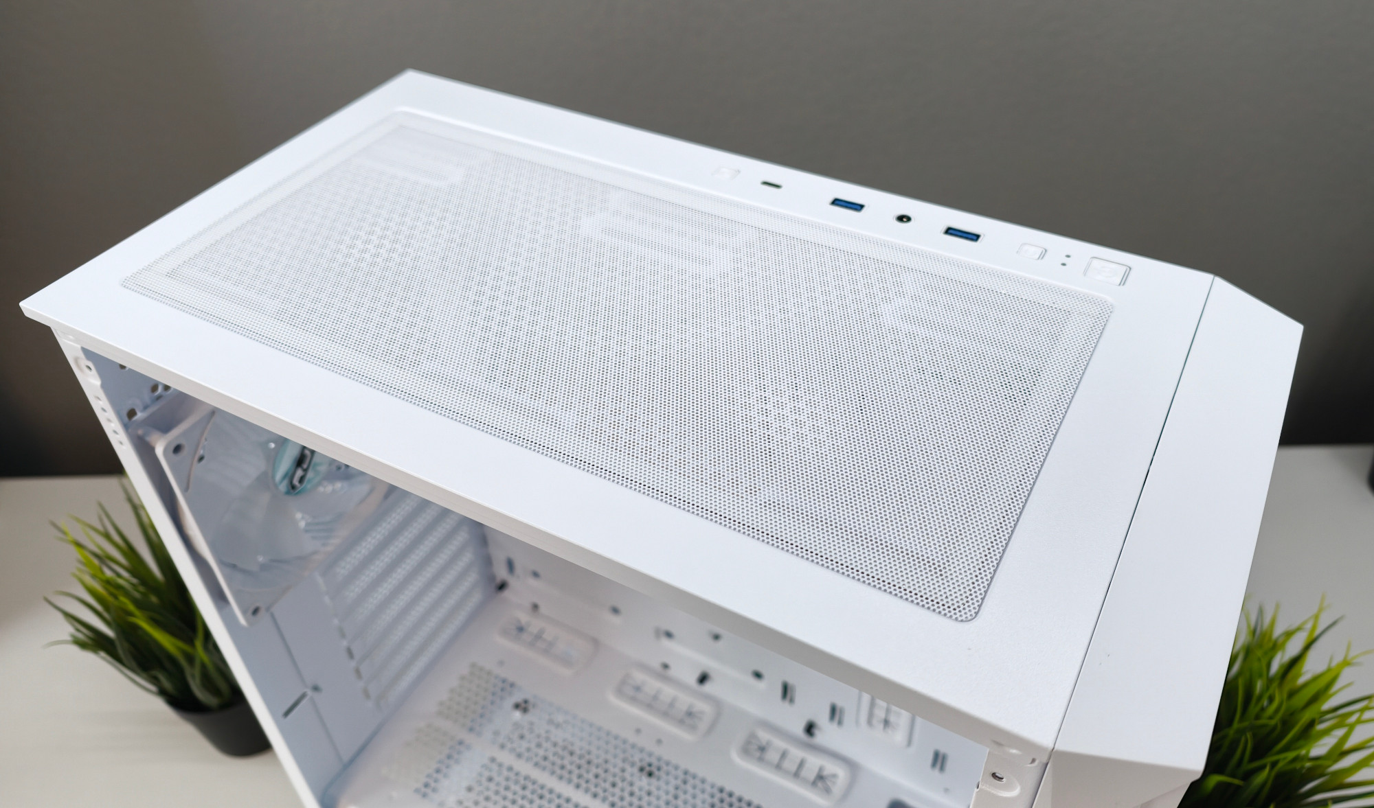 Что же касается пылевых фильтров, то у передней панели есть только металлическая сетка, сверху — базовый пылевик на магнитных лентах, а у блока питания — штатная сеточка.