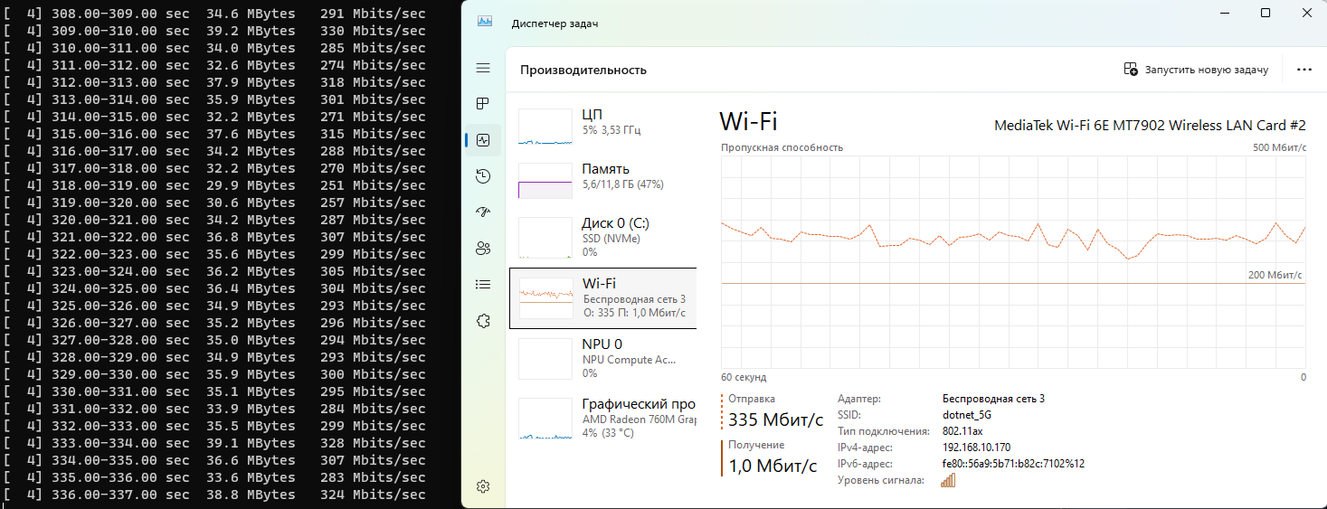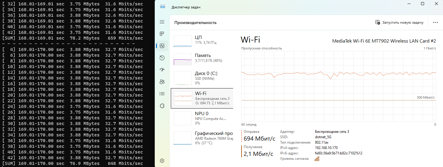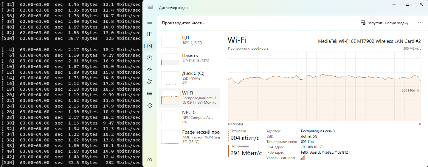 Тестирование возможностей WI-FI модуля, в 5ГГц сети