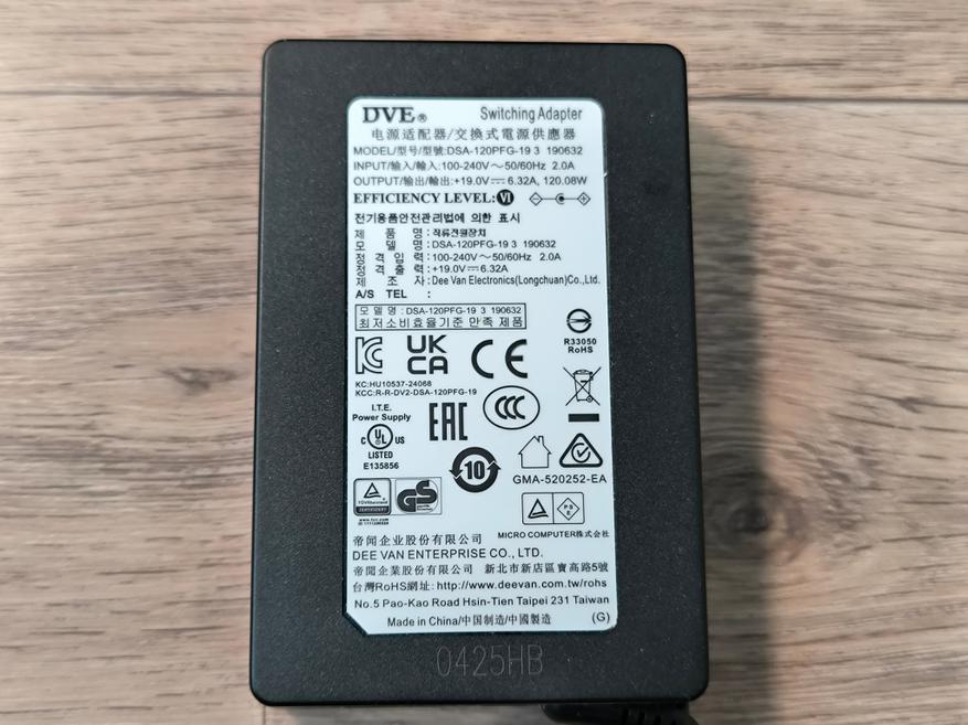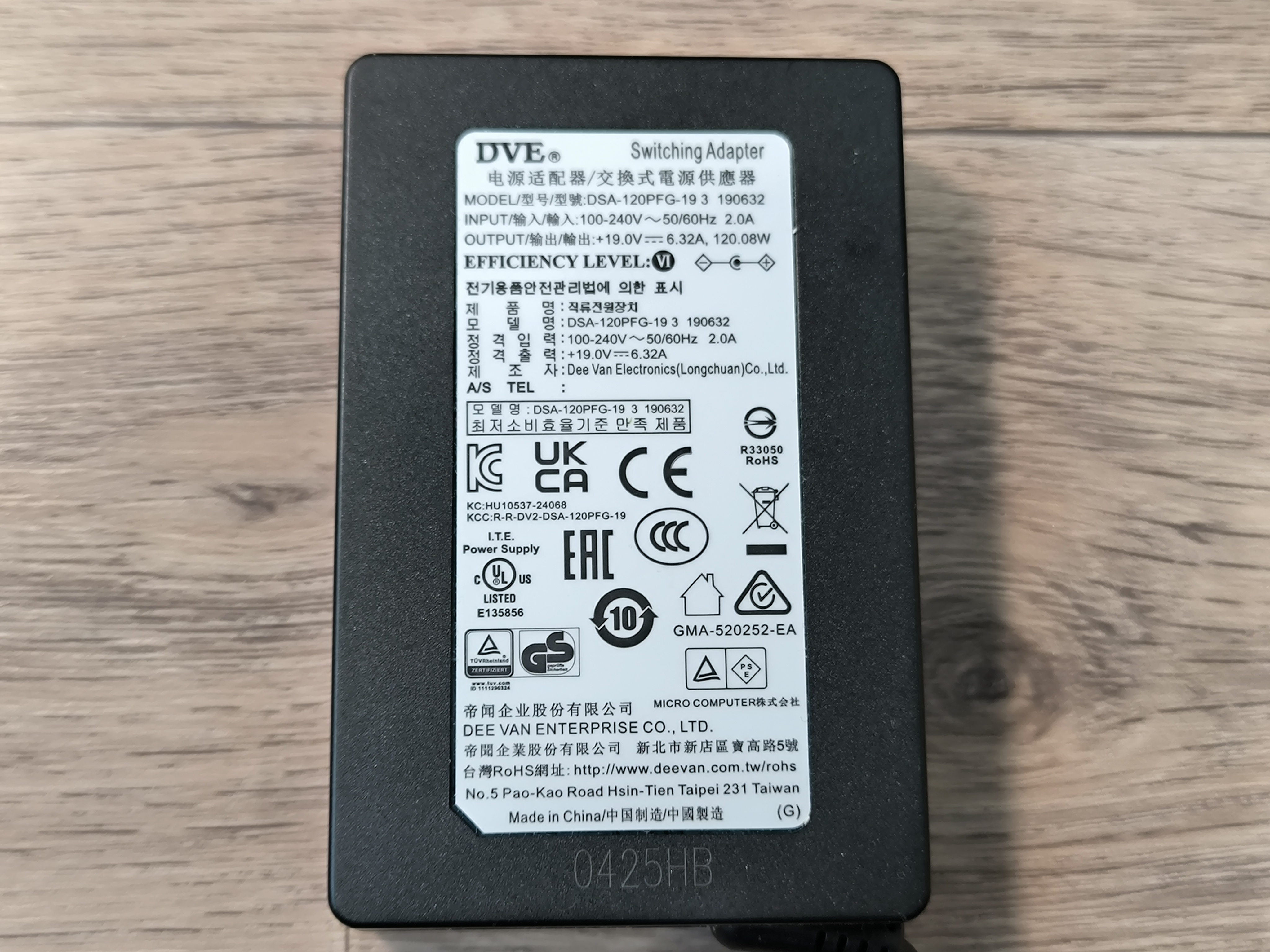 Блок питания здесь серьёзный, рассчитанный на максимальную мощность 120Вт (19В, 6.32А), которой хватит с запасом, даже при подключении внешних устройств по USB. Блок питания имеет съёмный кабель подачи питания (длина 1метр ), и выходной кабель (длина 1метр).