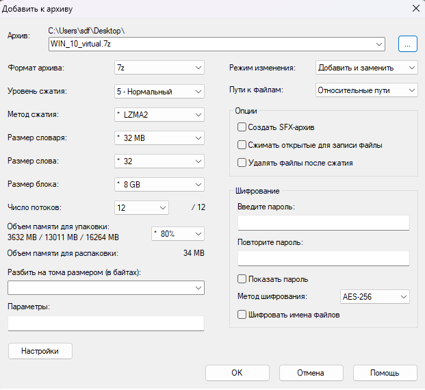 И так, имеем две одинаковых папки с образом ВМ, две одинаковых версии 7Z, одинаковые настройки сжатия (по умолчанию), два шестиядерных процессора, с 12 потоками, более быструю оперативную память у Intel I5-11400F, и ОС Windows 11.