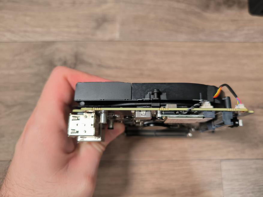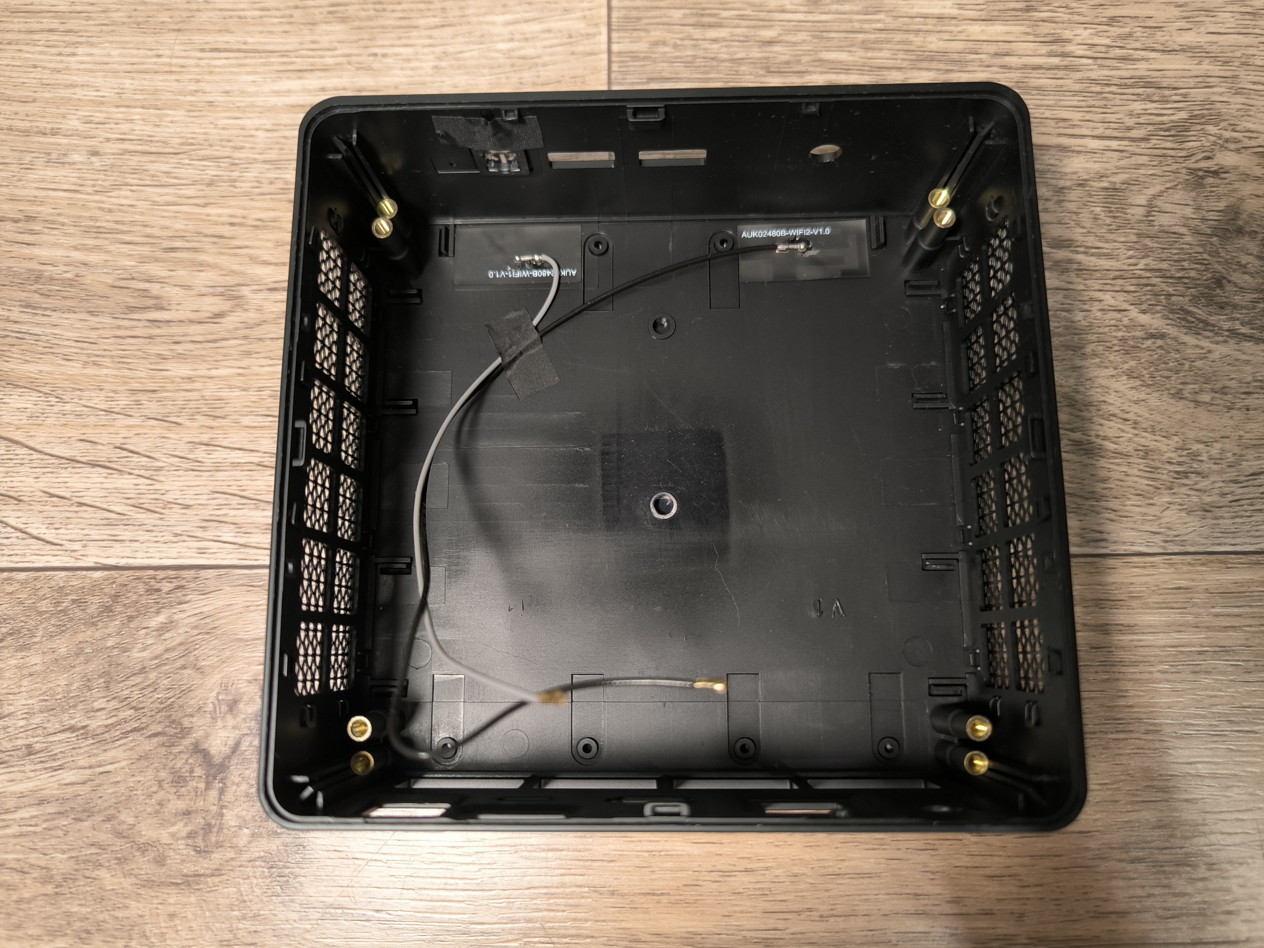 Теперь я выну плату из корпуса, чтобы лицезреть систему охлаждения. На противоположной стороне корпуса видны две антенный от WI-FI модуля.