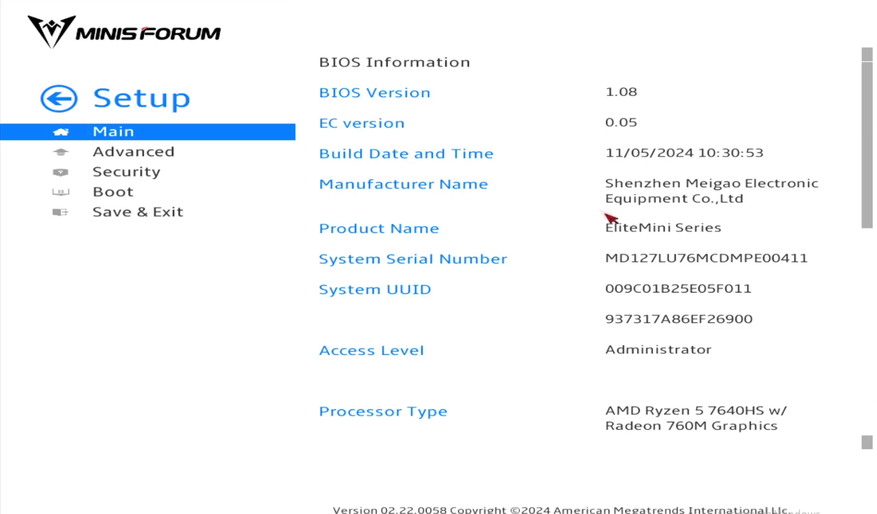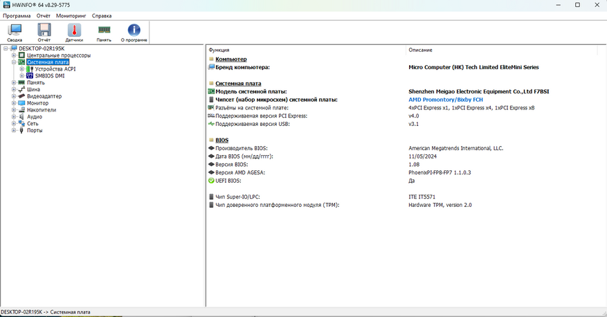 Здесь видим информацию о производителе мини-компьютера: Micro Computer (HK) Tech Limited Elite Mini Series, а также, данные о производителе материнской платы: Shenzhen Meigao Electronic Equipment Co., Ltd.