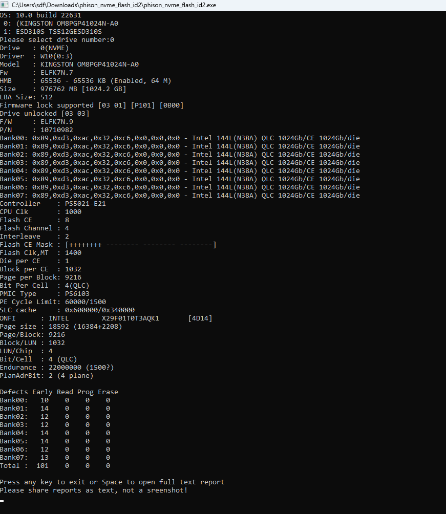 Как я уже писал ранее, мне SSD Kingston OM8PGP41024N напомнил SSD Kingston NV2, который я тестировал около года назад. Но NV2 был пусть и на медленной, 1024Гбит BICS5 памяти, но это была TLC память, а здесь же, распаяна QLC память (да и не самая свежая),