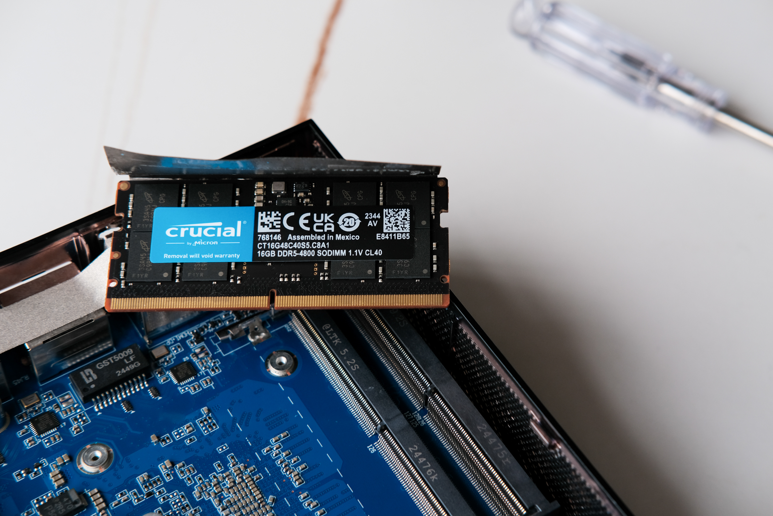 ОЗУ у данного пк почемуто оказалась закрыта наклейкой, но подняв её, я обнаружил что это память от Crucial, на 16Gb DDR5-4800. Далеко не самая быстрая, но зато прям брендовая.