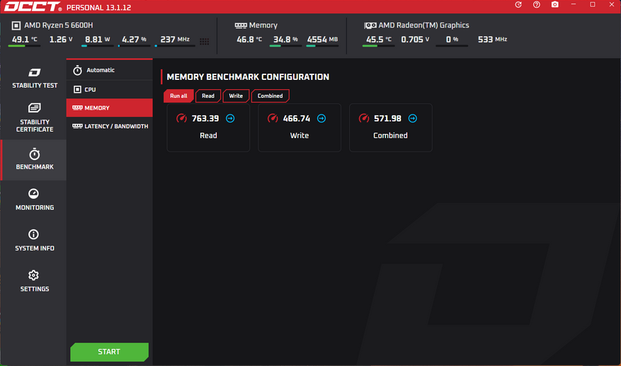 Её тогда и протестируем следом. Запускаем тест Aida64 и тест памяти. Ну и следом тест GPGU