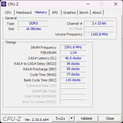 - Оперативная память: 16 ГБ DDR5-4800 МГц, установлена в один слот; всего два слота, поддержка до 64 ГБ