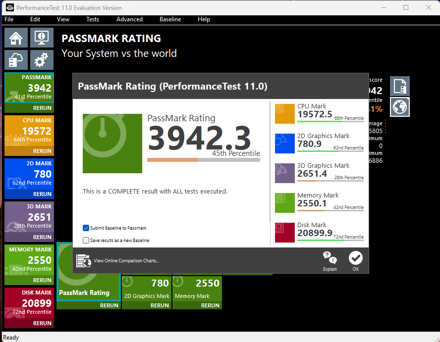 В бенчмарке PerformanceTest 11 Evaluation Version конфигурация набрала 3942.3 баллов.