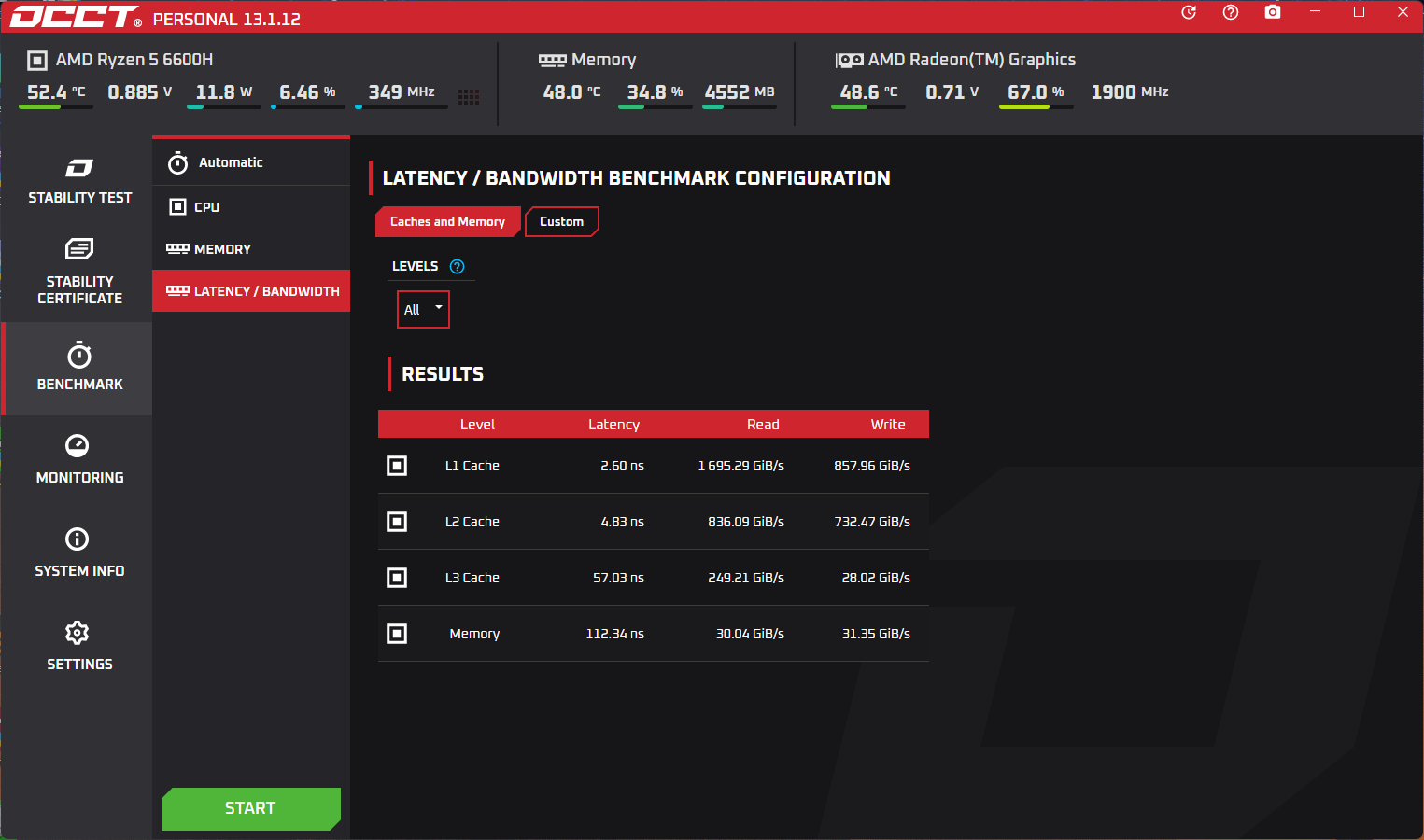 Сперва CPU-Z, тут уже давно зарекомендовавший себя процессор AMD Ryzen 5 6600H. Это процессор для ноутбуков на архитектуре Rembrandt-H (Zen 3+), в первую очередь рассчитанный на офисные системы. Он имеет 6 ядер и 12 потоков, а также изготовлен по 6 нм техпроцессу, максимальная частота составляет 4500 МГц, множитель заблокирован.