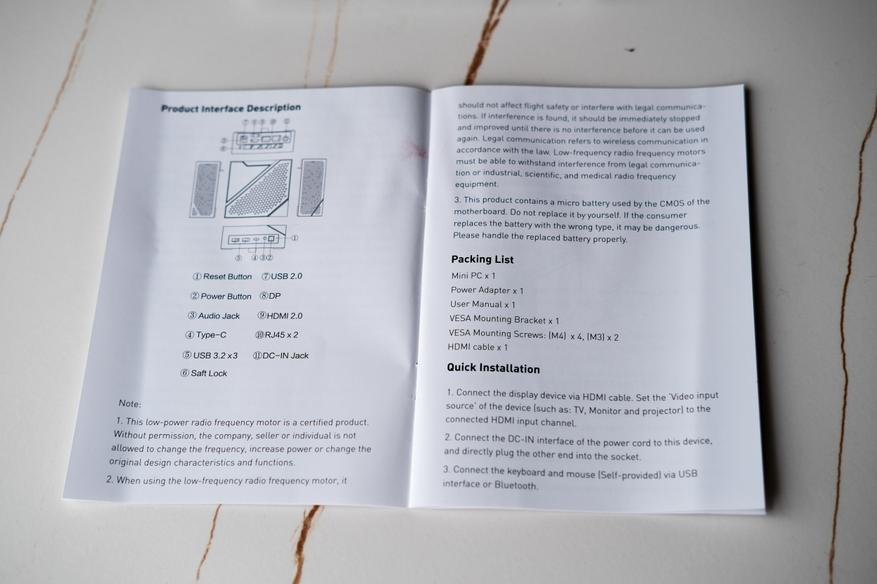 Инструкция. Имеется английский перевод, но пользы от неё в принципе никакой (как и в 99% случаев во всех мини-ПК от разных производителей)