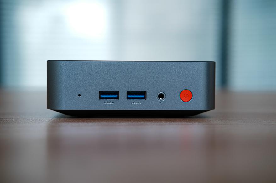 Если посмотреть на лицевую сторону, то здесь можно увидеть два порта USB 3.2 Gen2, разъём для подключения гарнитуры и кнопку питания.