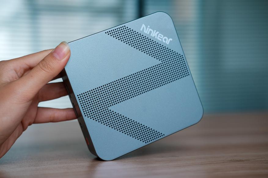Внешне мини-ПК Ninkear N10Pro смотрится неплохо. Пластиковый корпус смотрится как алюминий, а графические элементы на крышке, делают корпус более симпатичным, и как минимум не скучным. Так что особой надобности скрывать его за монитор у вас не возникнет. Такой корпус весьма неплохо будет смотреться на столе.