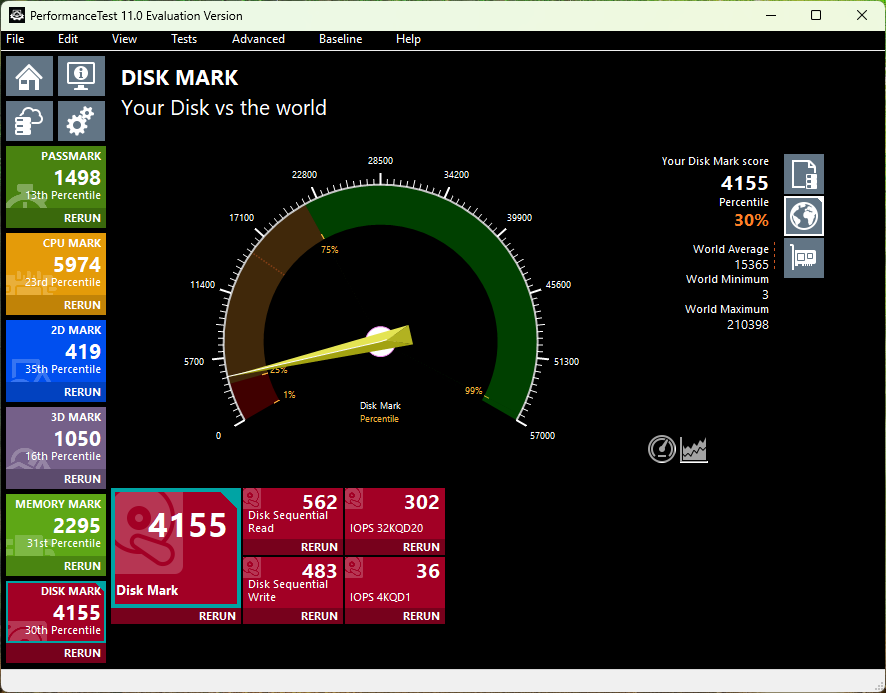 Следующий тест, это PreformanceTest 11 Evaluation Version в котором сабж набрал 1498.8 баллов