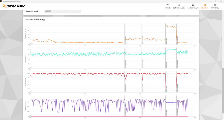 Следующий тест, это 3DMark. Хоть это тест для более игровых систем, но всё же я использую его в обзорах. Чтобы наглядно было видно возможности компьютера и можно было сравнить показания с другими моделями.