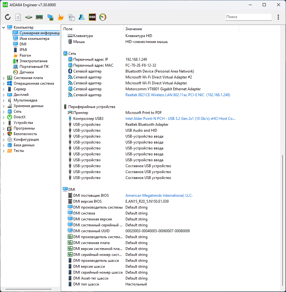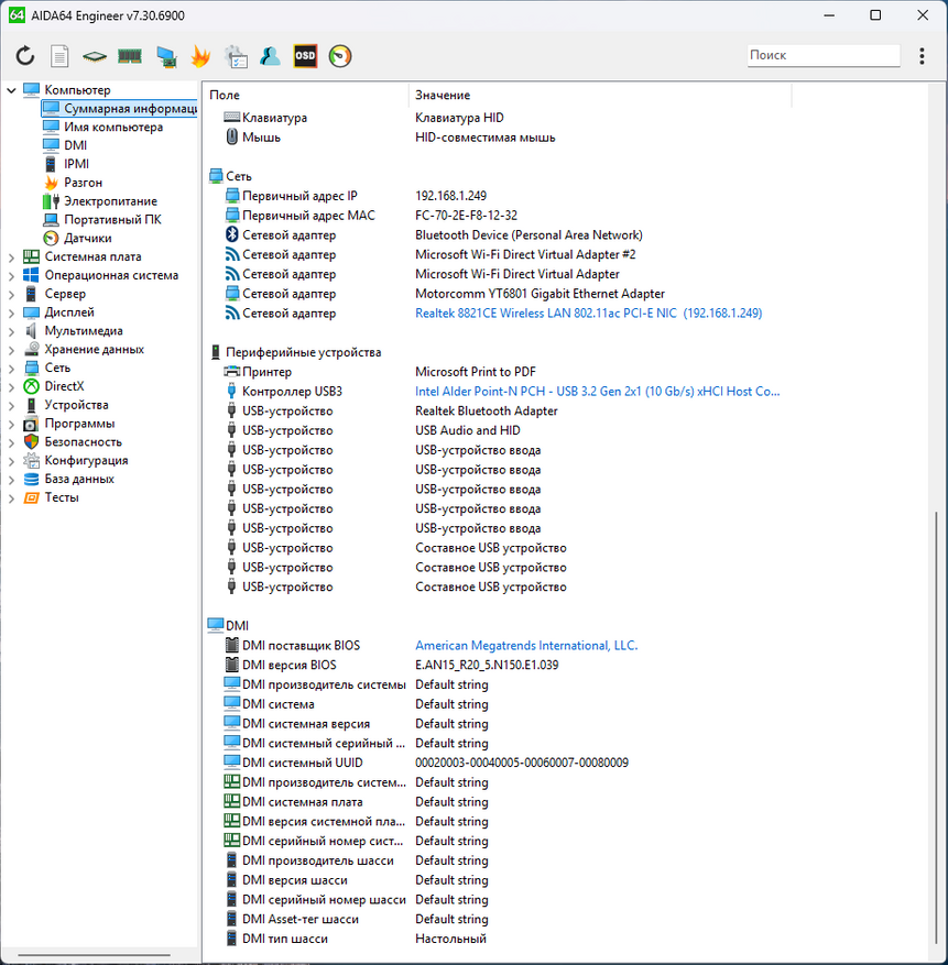 Заодно посмотрел что программа показывает по встроенному железу (но если что разбирать и смотреть этот ком мы будем дальше по тексту)