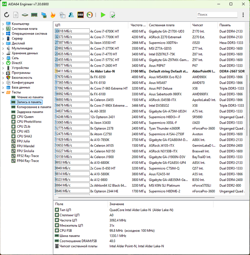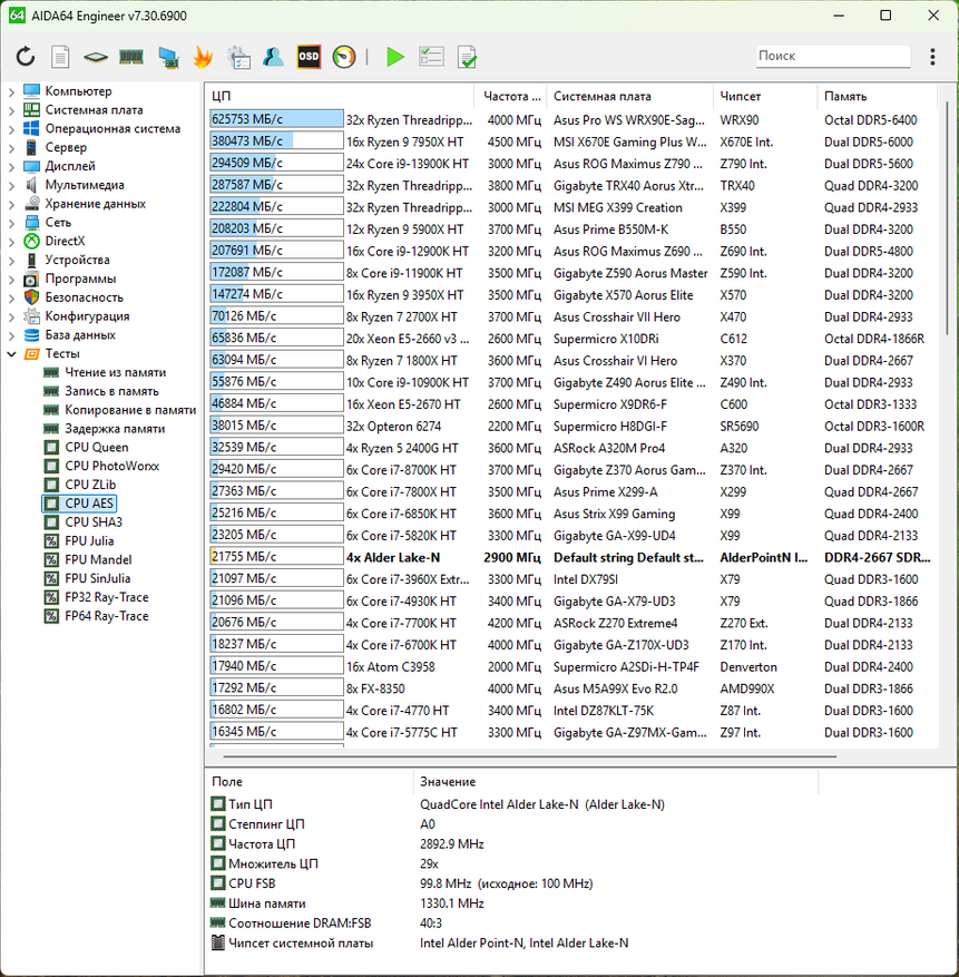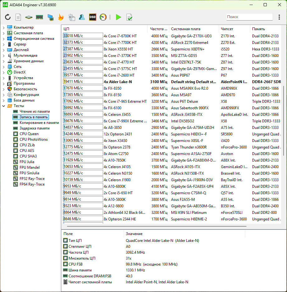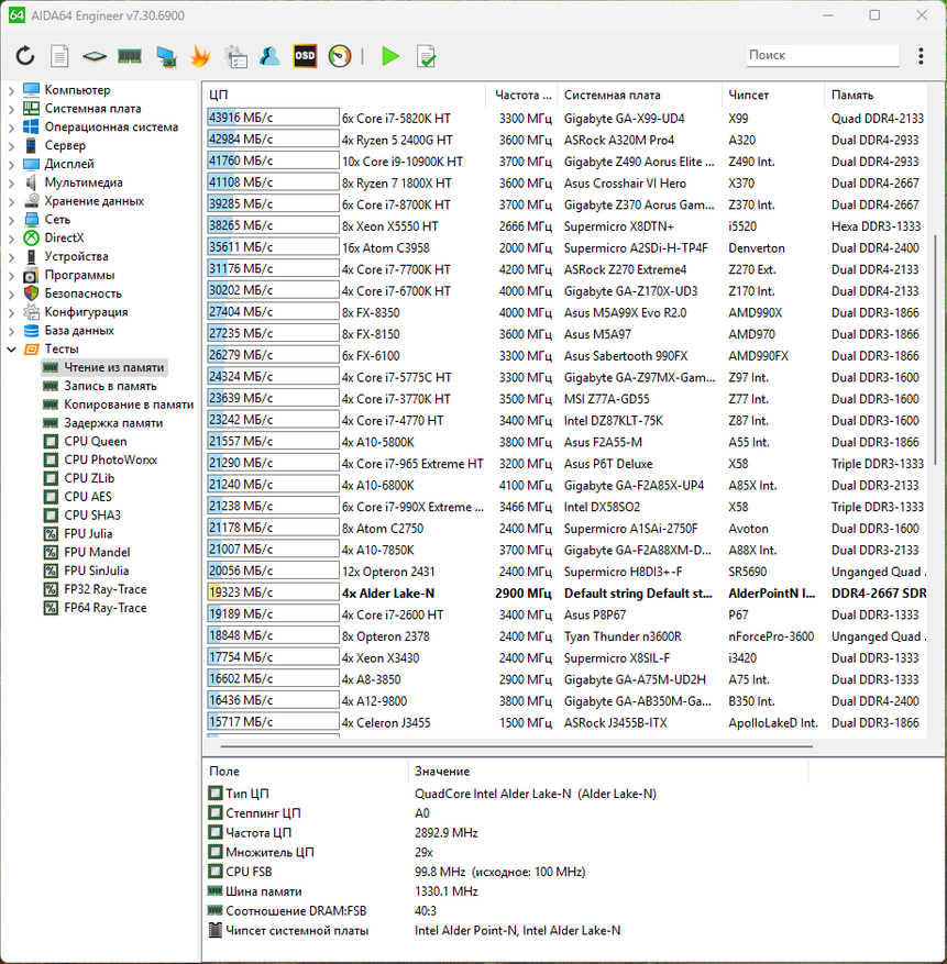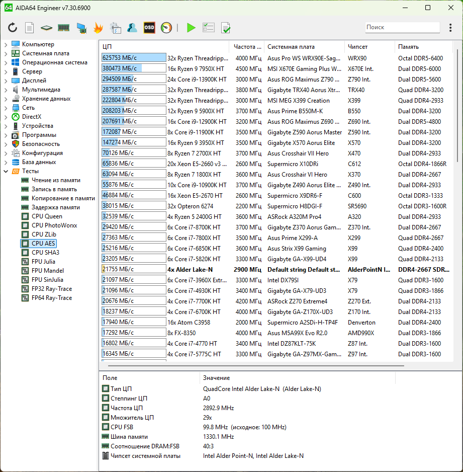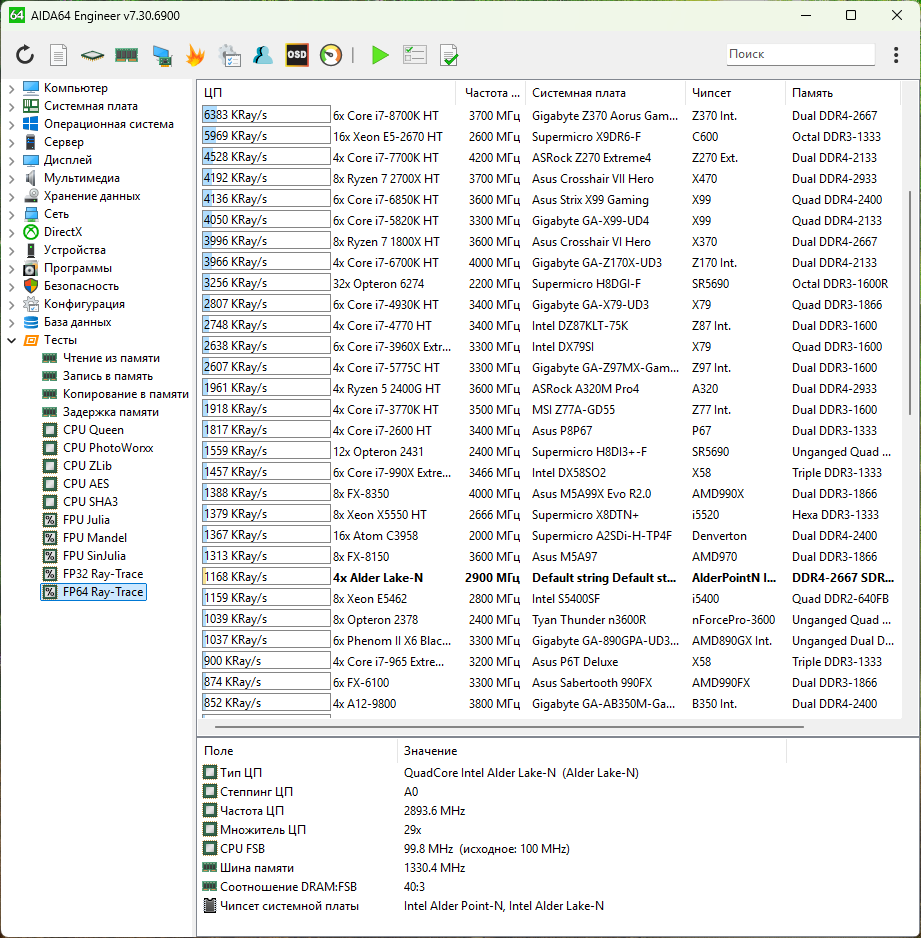 Следом залез в AIDA64 и понеслось. Прогнал все микротесты. Результаты ниже.