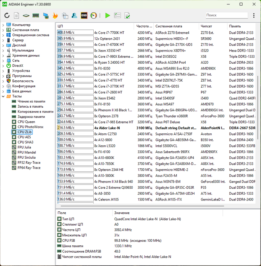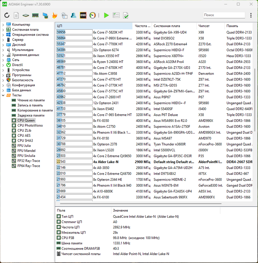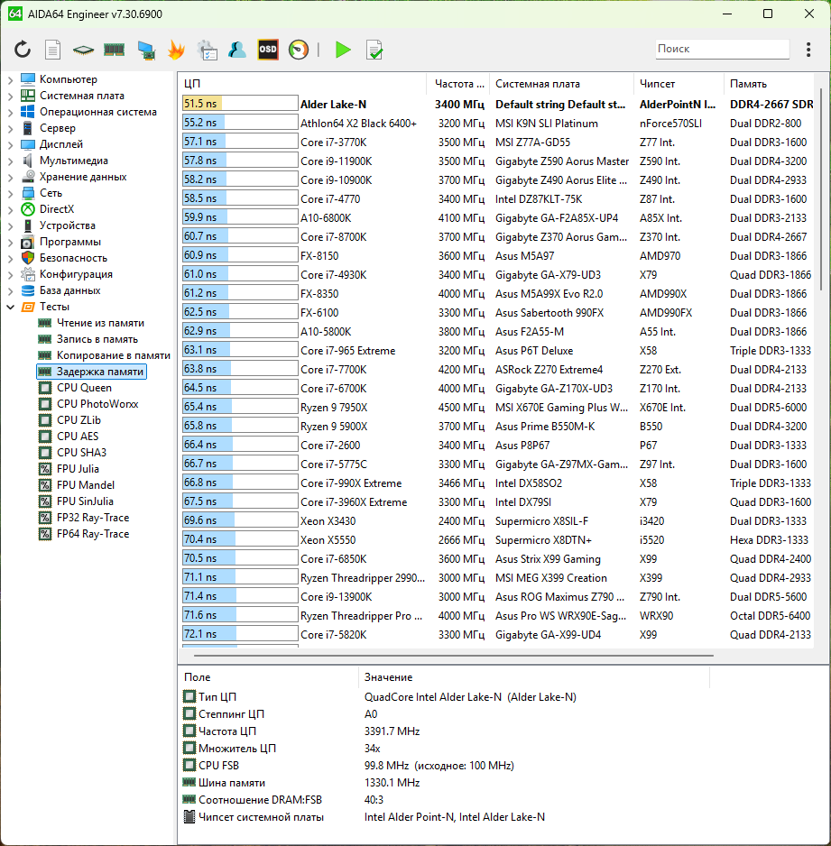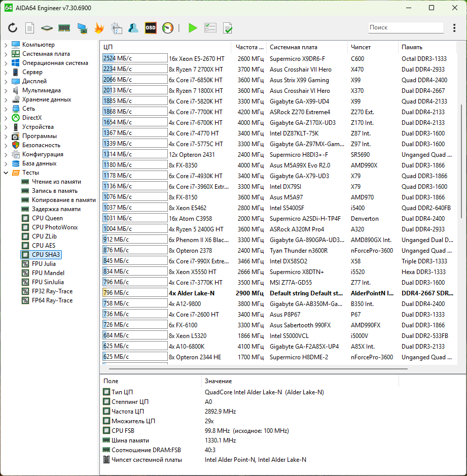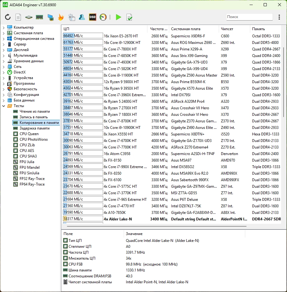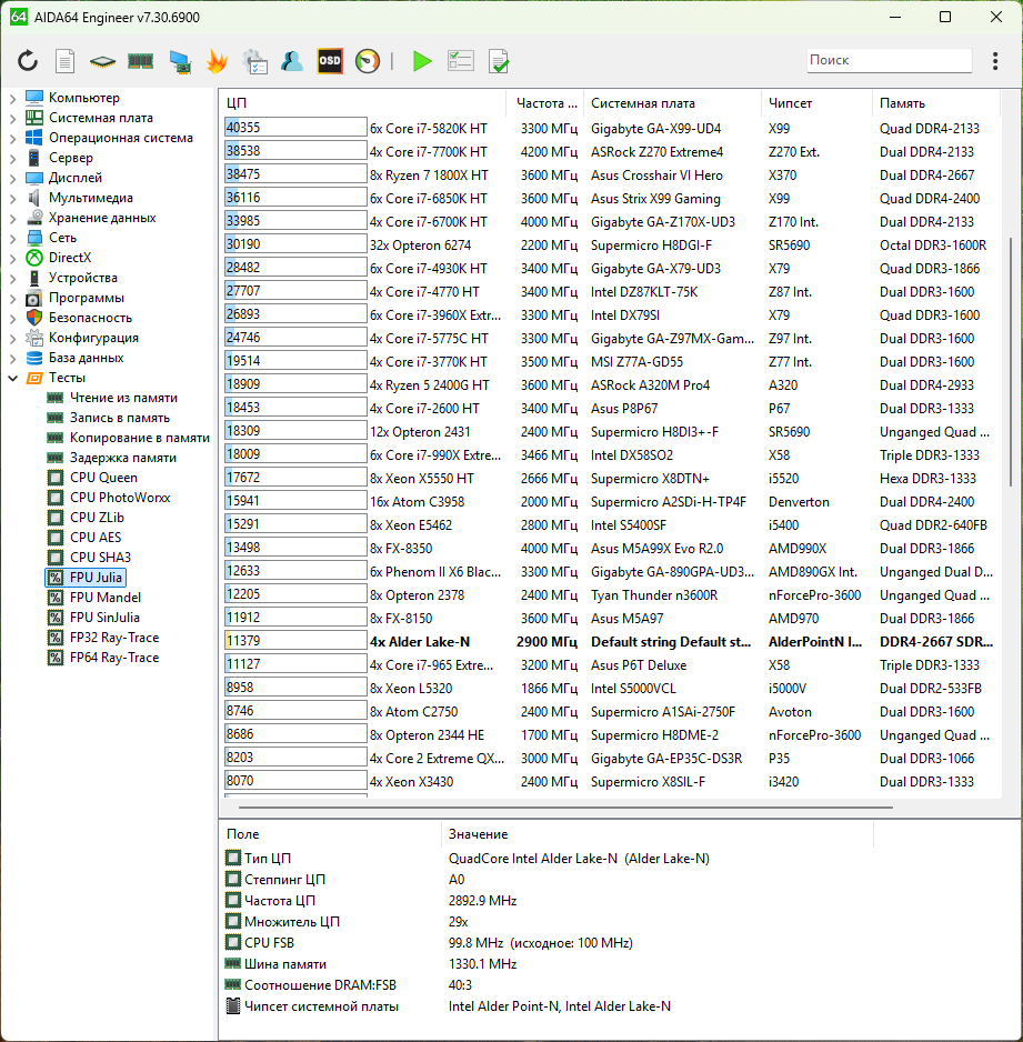 Следом залез в AIDA64 и понеслось. Прогнал все микротесты. Результаты ниже.