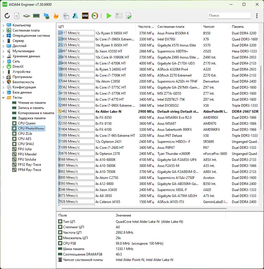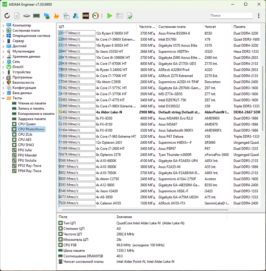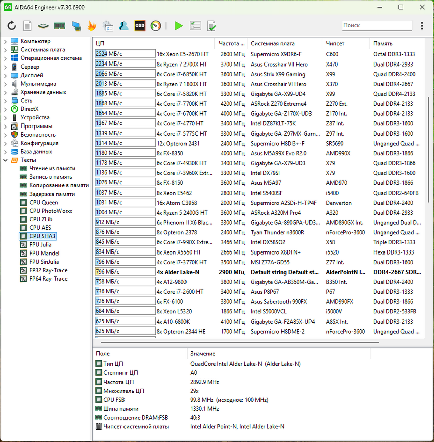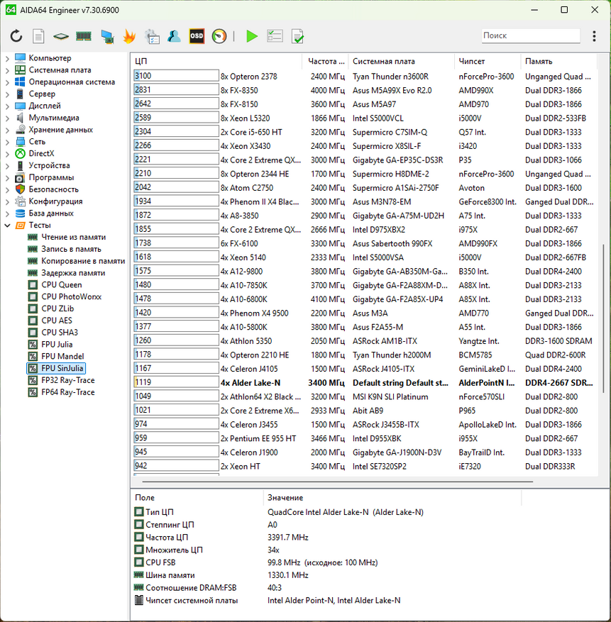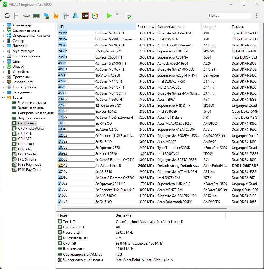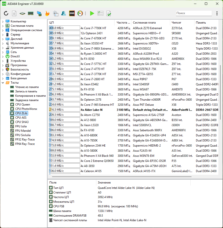 Следом залез в AIDA64 и понеслось. Прогнал все микротесты. Результаты ниже.