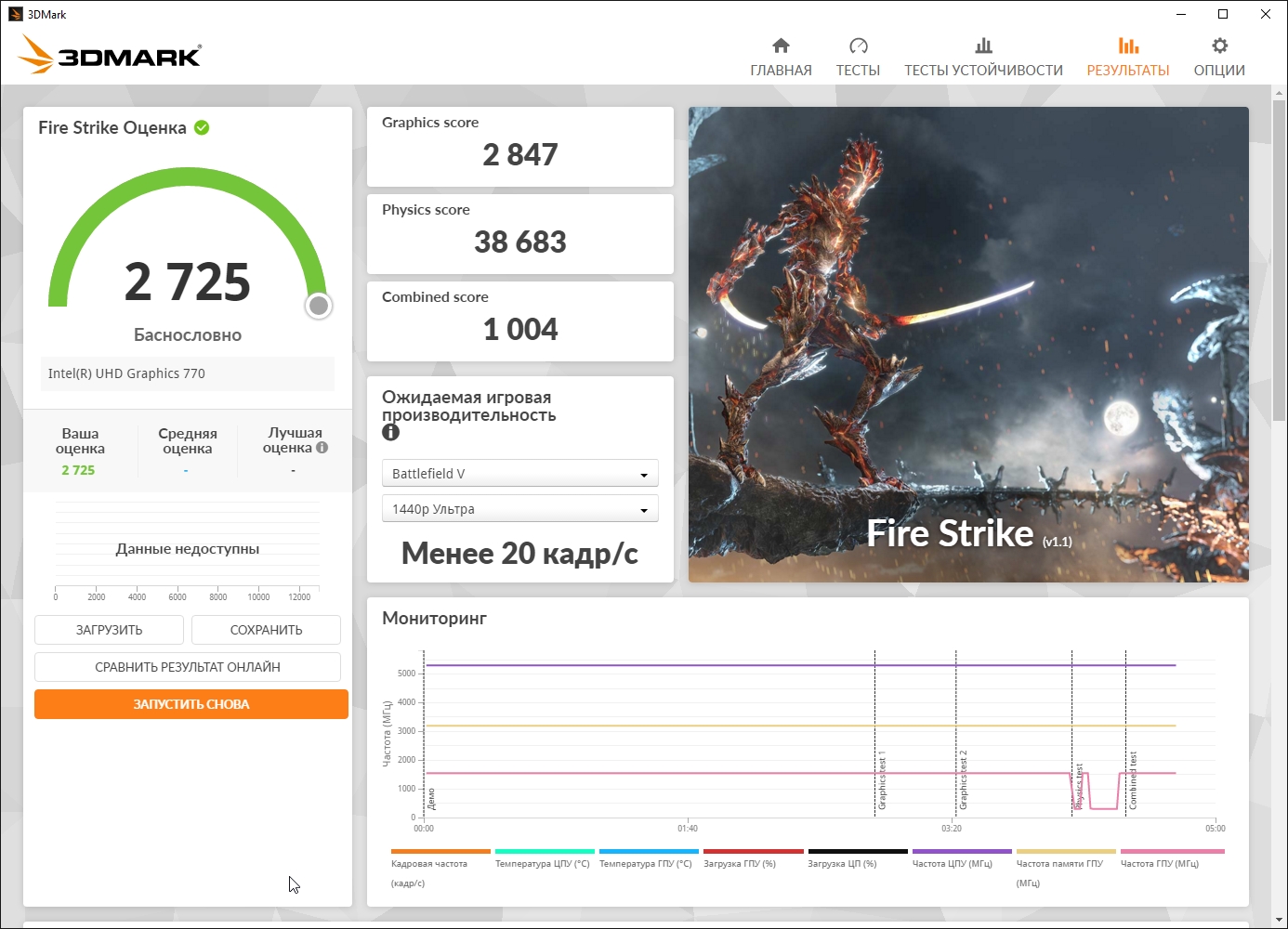 Все остальные задачи выполнялись штатно, сбоев не было, артефактов при использовании встроенного видеоядра в играх тоже. Например, 3D Mark очень любит «вываливаться» с ошибкой, если есть проблемы с ОЗУ, а тестирую всё это дело на встройке, поэтому, я давно включил его в тестовый пакет для оперативной памяти.