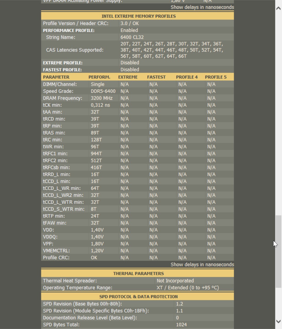 В стоке все как обычно, максимально безопасные значения на которых память запустится на любом комбо из материнской платы и процессора. А вот профиль разгона лично меня порадовал. Частота 6400мгц по моему мнению — золотая середина для Intel. Планки с более высокой частотой уже слишком дороги, а соотношение цена/прирост производительности уже не линейный. Для AMD хотелось бы профиль 6000мгц при пониженных таймингах, но имеем что имеем.