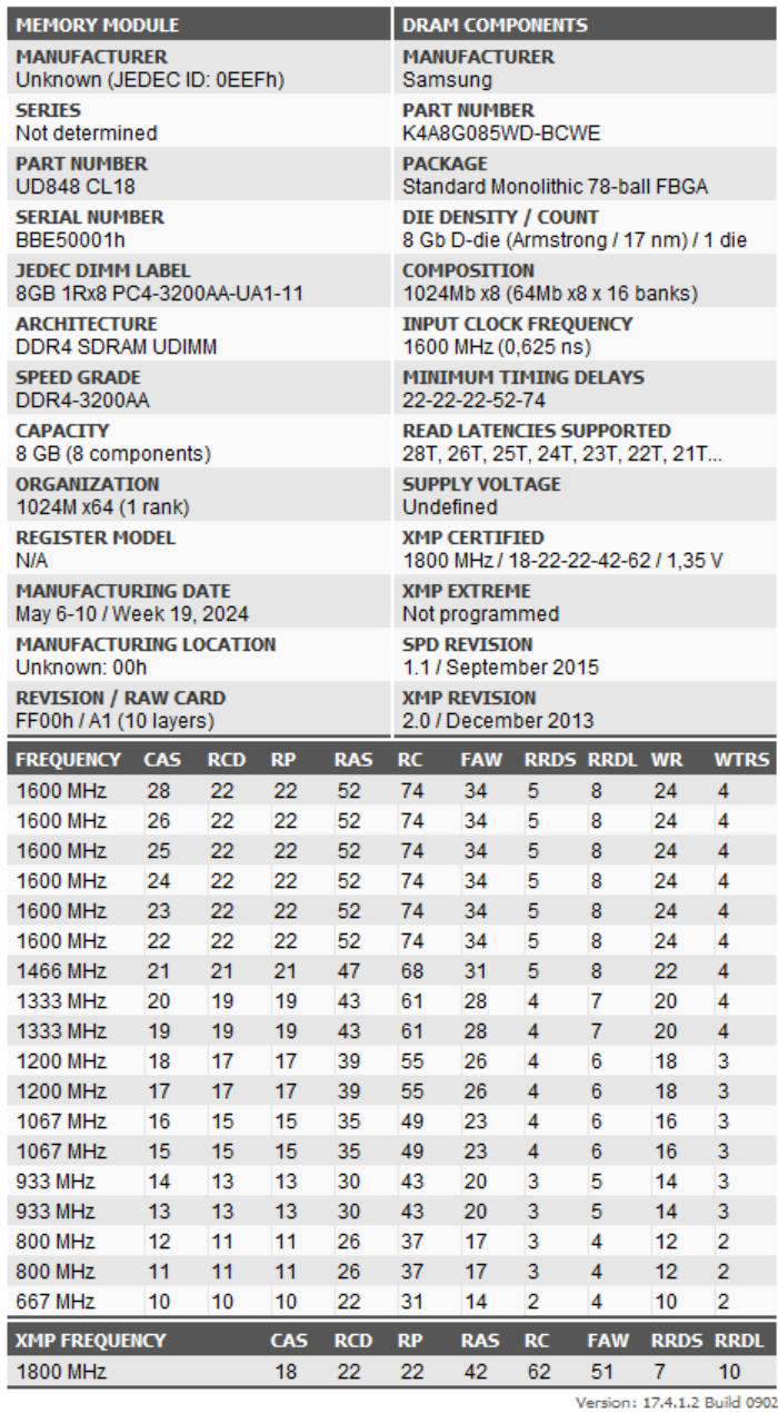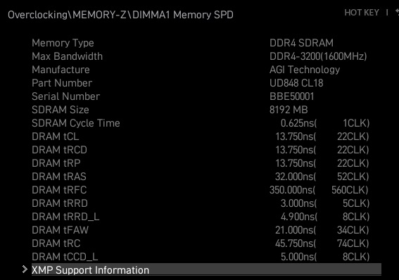 Модули AGI TurboJet RGB DDR4-3600 2x8 Гбайт построены на чипах Samsung D-die (Armstrong, 17 nm). Вполне изученные чипы со своими достоинствами и особенностями. Новинка поддерживает только один профиль XMP с тактовой частотой 3600 МГц и пониженным первичным таймингом CL до 18.