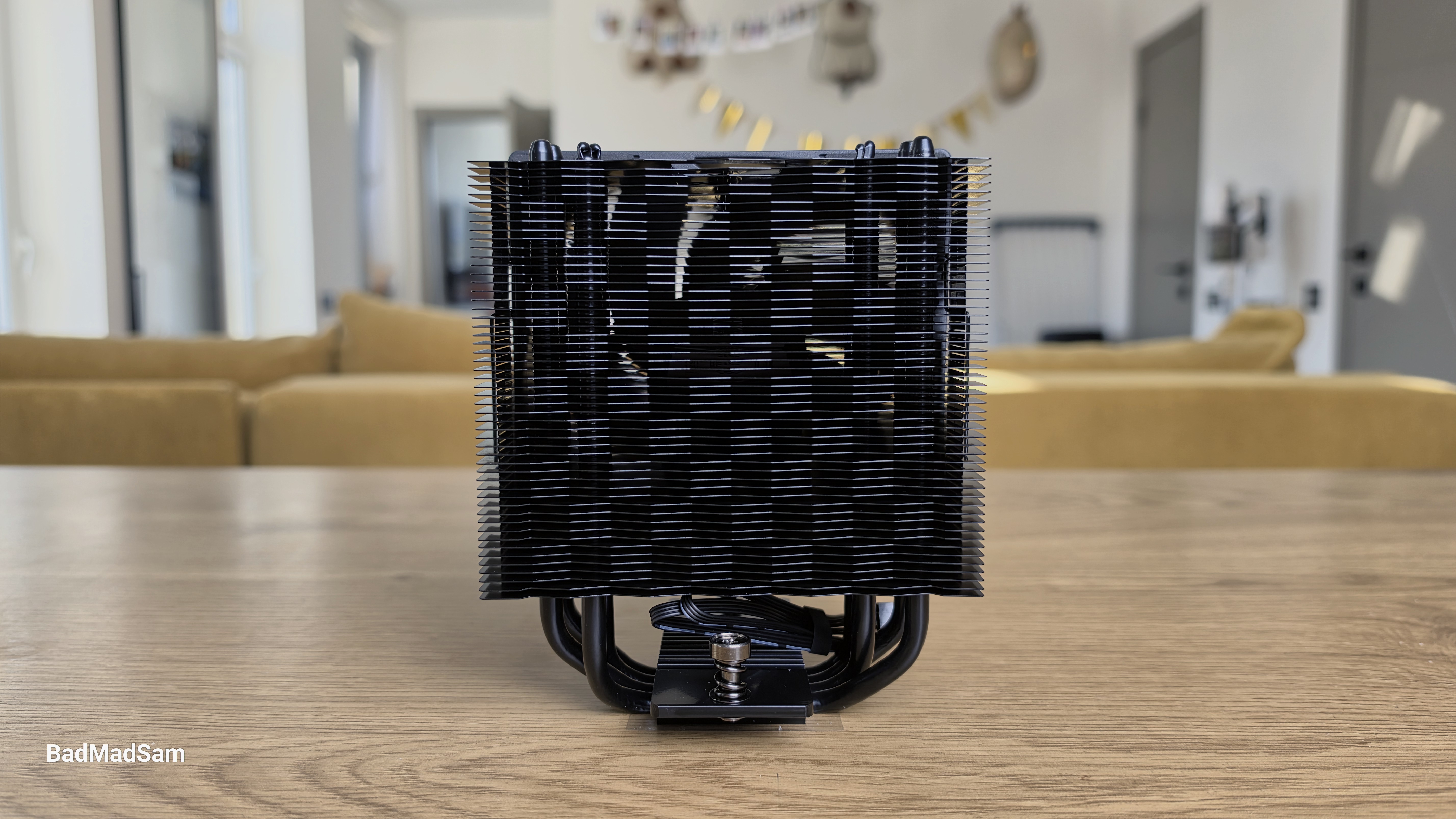 Радиатор ориентирован на работу с направленным воздушным потоком. Конструкция пластин выполнена с учетом прохождения воздуха через всю толщину башни, без выраженных «мертвых зон». За счет формы ребер поток распределяется внутри радиатора более равномерно, что влияет на эффективность отвода тепла при средних и высоких оборотах вентилятора.