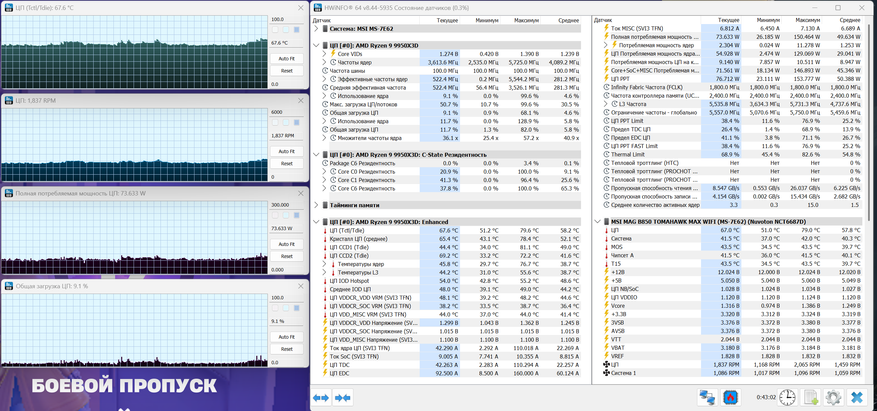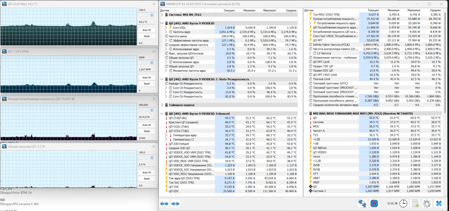 Тестирование проводил на системе с процессором AMD Ryzen 9 9950X3D и материнской платой MSI MAG B850 Tomahawk MAX WiFi. В конфигурации использовалась оперативная память XPG DDR5 Lancer Blade RGB объемом 32 ГБ, накопители XPG Mars 980 Blade на 1 ТБ и Silicon Power XS90 на 2 ТБ. Питание обеспечивает блок Formula FV-1000GM, вся сборка размещена в корпусе XPG Invader X Mini. Проверку кулера выполнял в трех сценариях: простой системы, игровая нагрузка в Fortnite с использованием встроенной графики и синтетический тест Cinebench 2026.