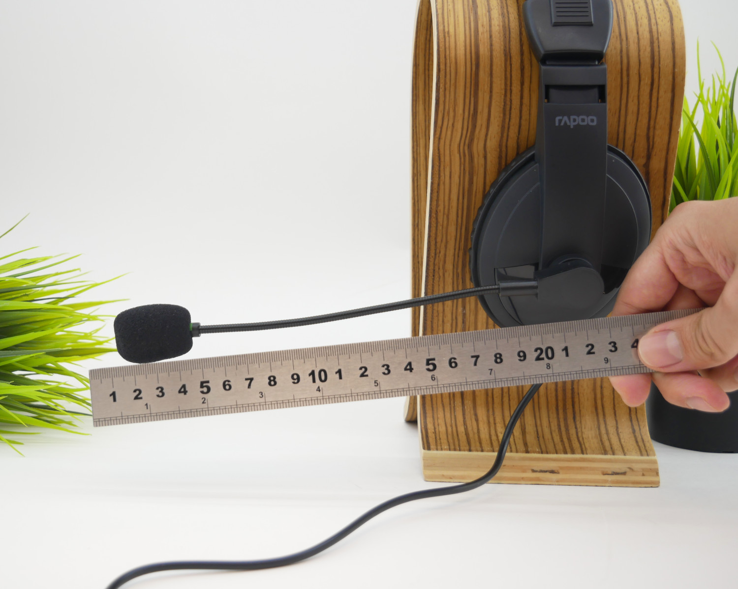 Особенностью модели Rapoo H150S является направленный микрофон на гибкой штанге длиной 153 мм от поворотного механизма до шайбы.