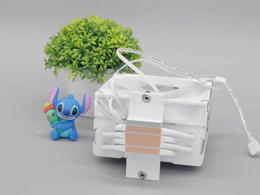 Внешний вид Deepcool AG400 WH ARGB V2 приятный, вентилятор из белого пластика, а радиатор окрашен в белый цвет. Массивная основная пластина не выбивается из общего дизайна и покрыта краской белого цвета.