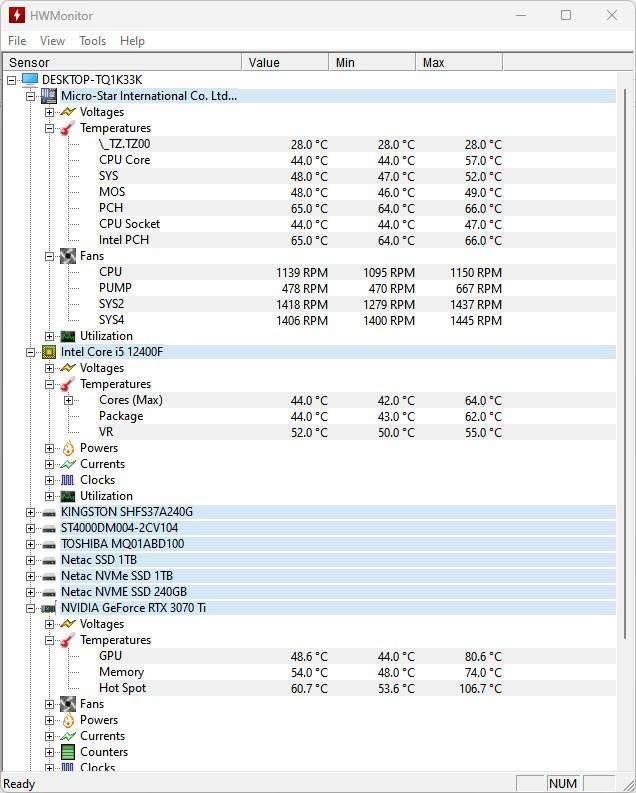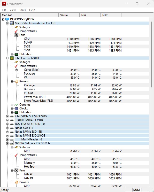 При просмотре скриншотов значения оборотов СО Deepcool AG400 WH ARGB V2 отображаются как PUMP.