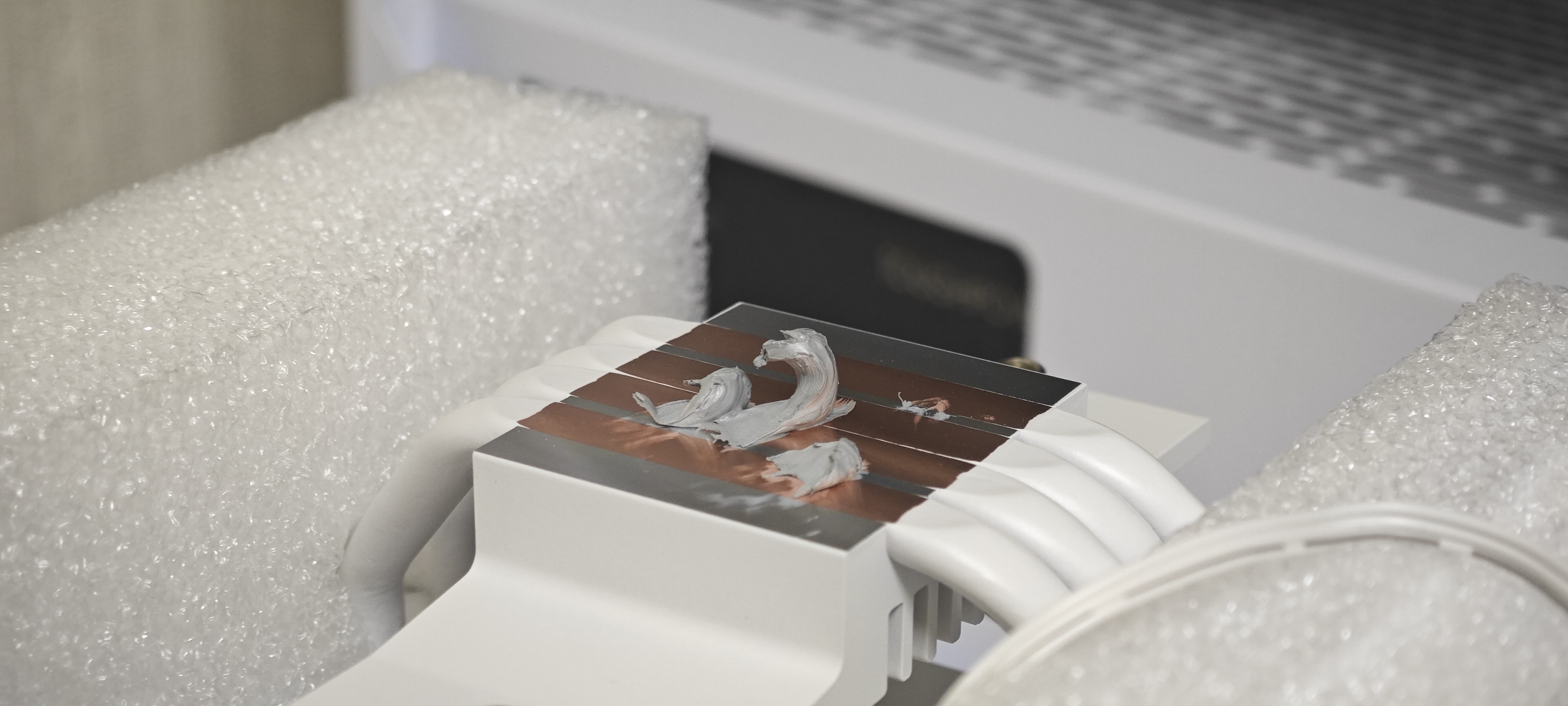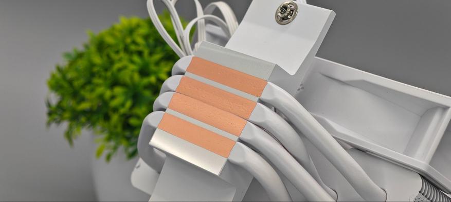 Тепловые трубки окрашены в белый цвет и располагаются не слишком плотно в основной пластине. Площадь пятна контакта дает немного свободы для хорошего распределения энергии для всех трубок.