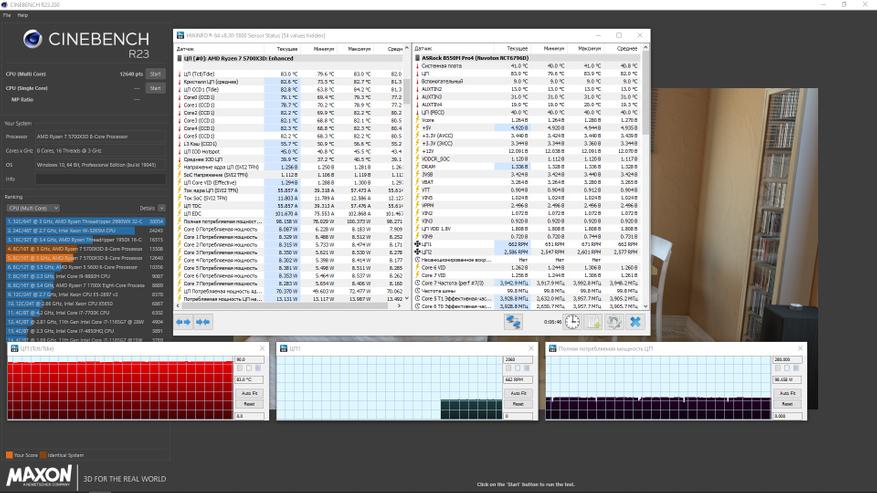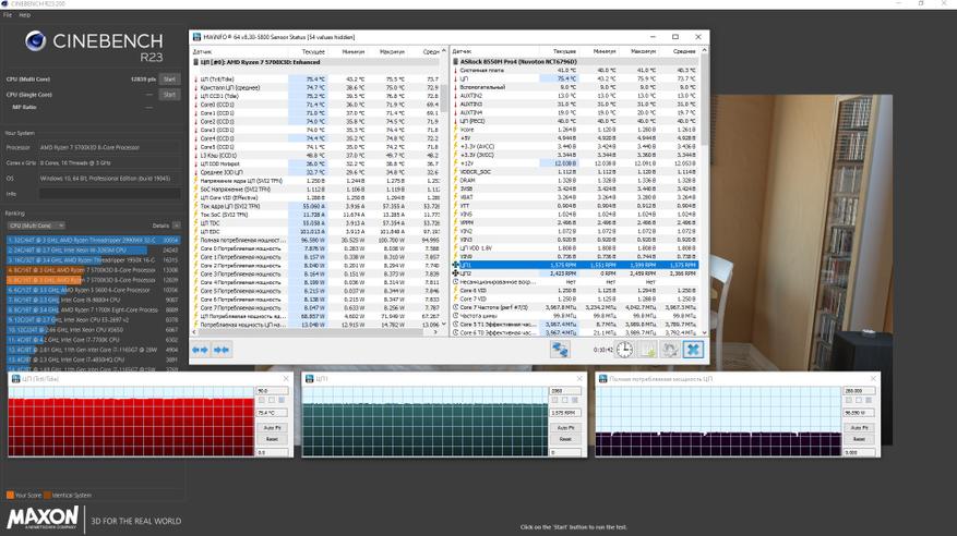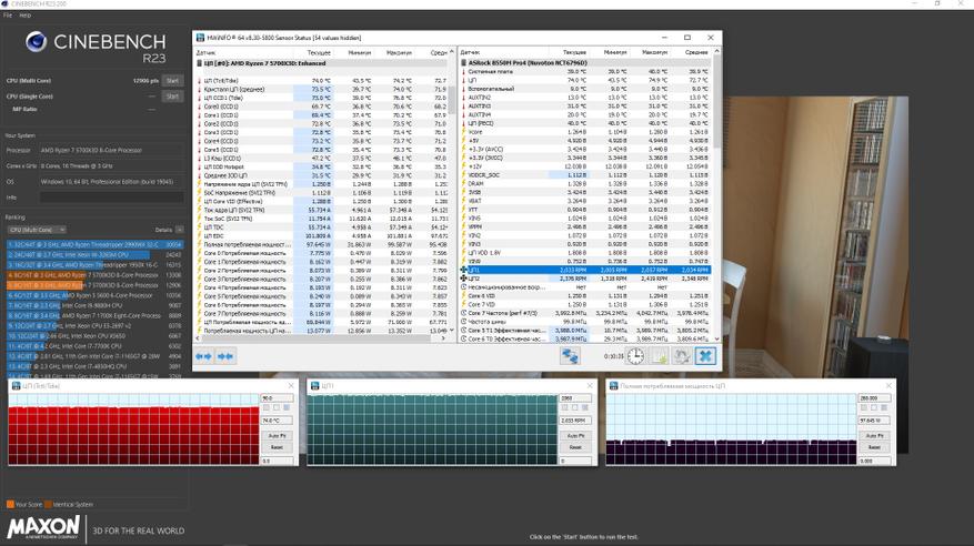 После правильной сборки система должна запуститься, а процессор не перегреваться. Поэтому перед тестированием я запустил часовой тест и мониторил температуру CPU. Так как у меня есть данные по предыдущей СЖО Ocypus Iota L24 BK, то сравнив минимальную и максимальную температуры с Delta L24 WH ARGB V2 Ocypus проблем выявлено не было.