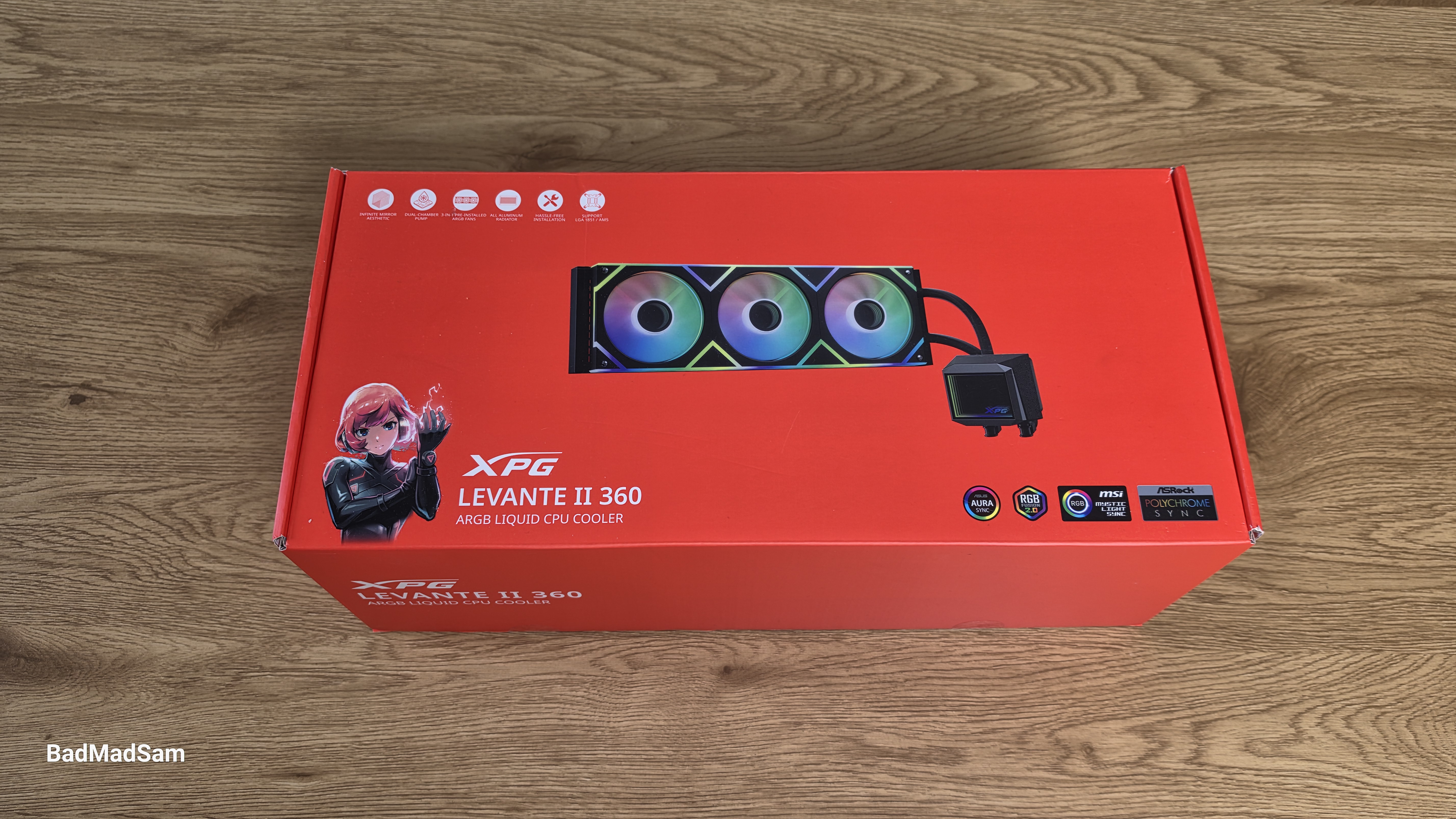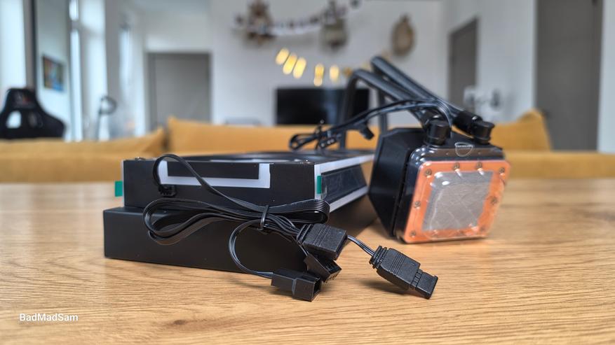 Функционально XPG Levante II 360 построена как классическая необслуживаемая СЖО с акцентом на упрощенную установку и объединение элементов в один модуль. Основой системы является алюминиевый радиатор формата 360 мм, который работает в связке с трехсекционным вентиляторным блоком. Здесь используется единая рамка 3в1, за счет чего сокращается количество проводов и упрощается монтаж. Подключение выполняется через PWM (4-pin), управление оборотами вентиляторов и помпы автоматическое, в зависимости от температуры.
