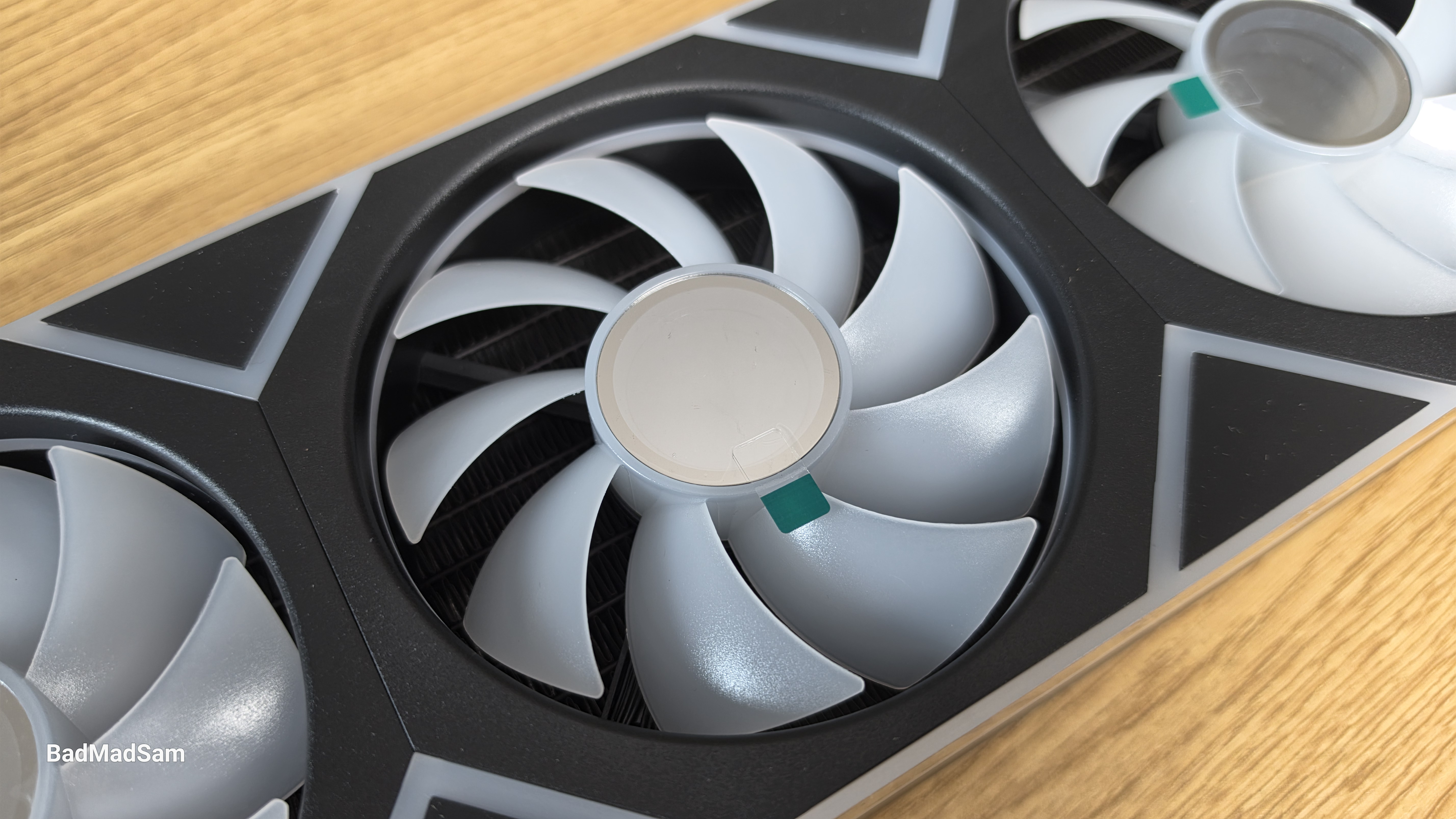 Сами вентиляторы визуально сделаны довольно необычно. В центральной части нет стандартной глухой ступицы со стикером, вместо этого используется эффект, напоминающий тоннель уходящий внутрь. Из-за этого крыльчатка смотрится глубже, чем в обычных вентиляторах. Подсветка внутри распределяется плавно, без резких переходов между зонами.