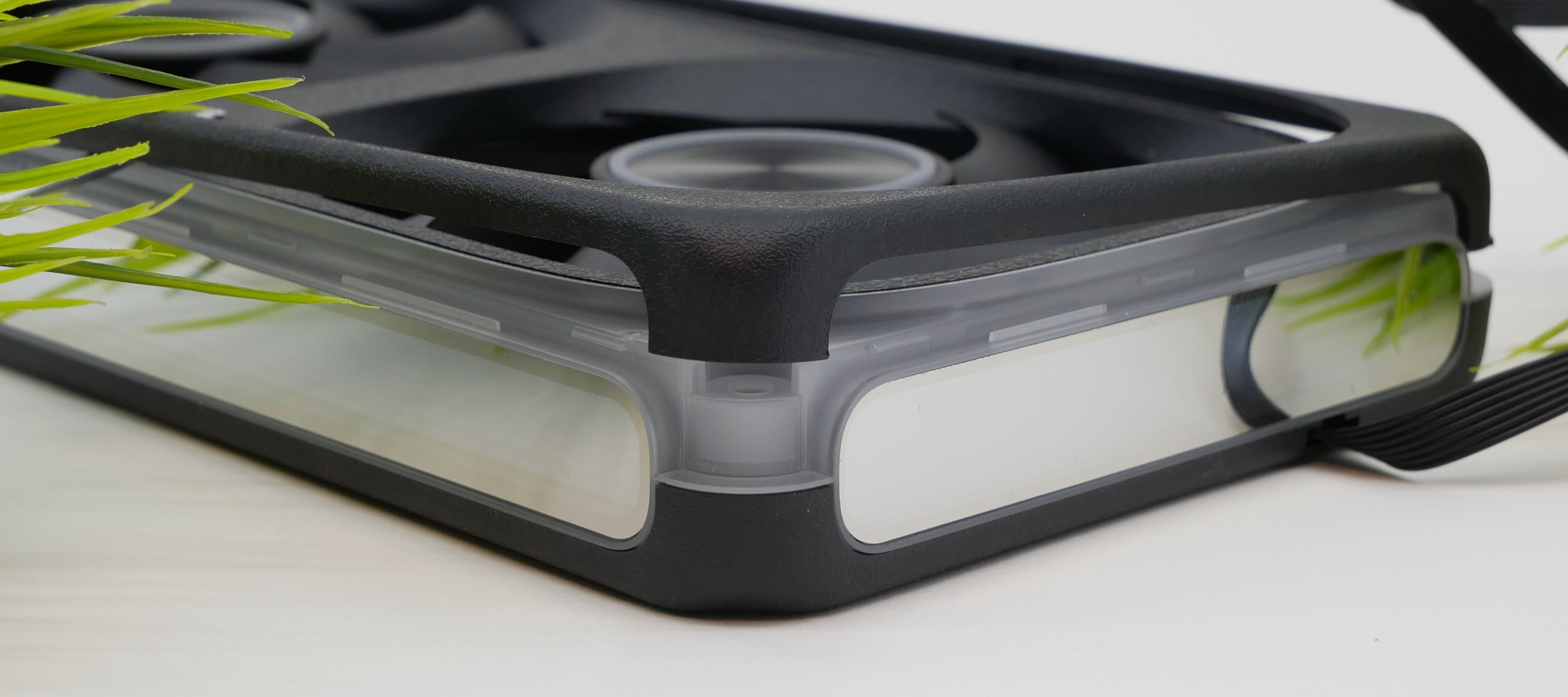 Одна из изюминок вентиляторов Formula V Line Air Fusion 3 заключена в популярной зеркальной подсветке с эффектом бесконечности. Потом я покажу ее реализацию, и она будет необычной. На одном углу находится стрелка с указанием направления воздушного потока и защелка.