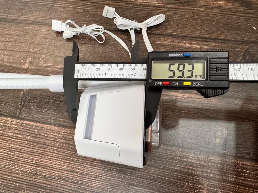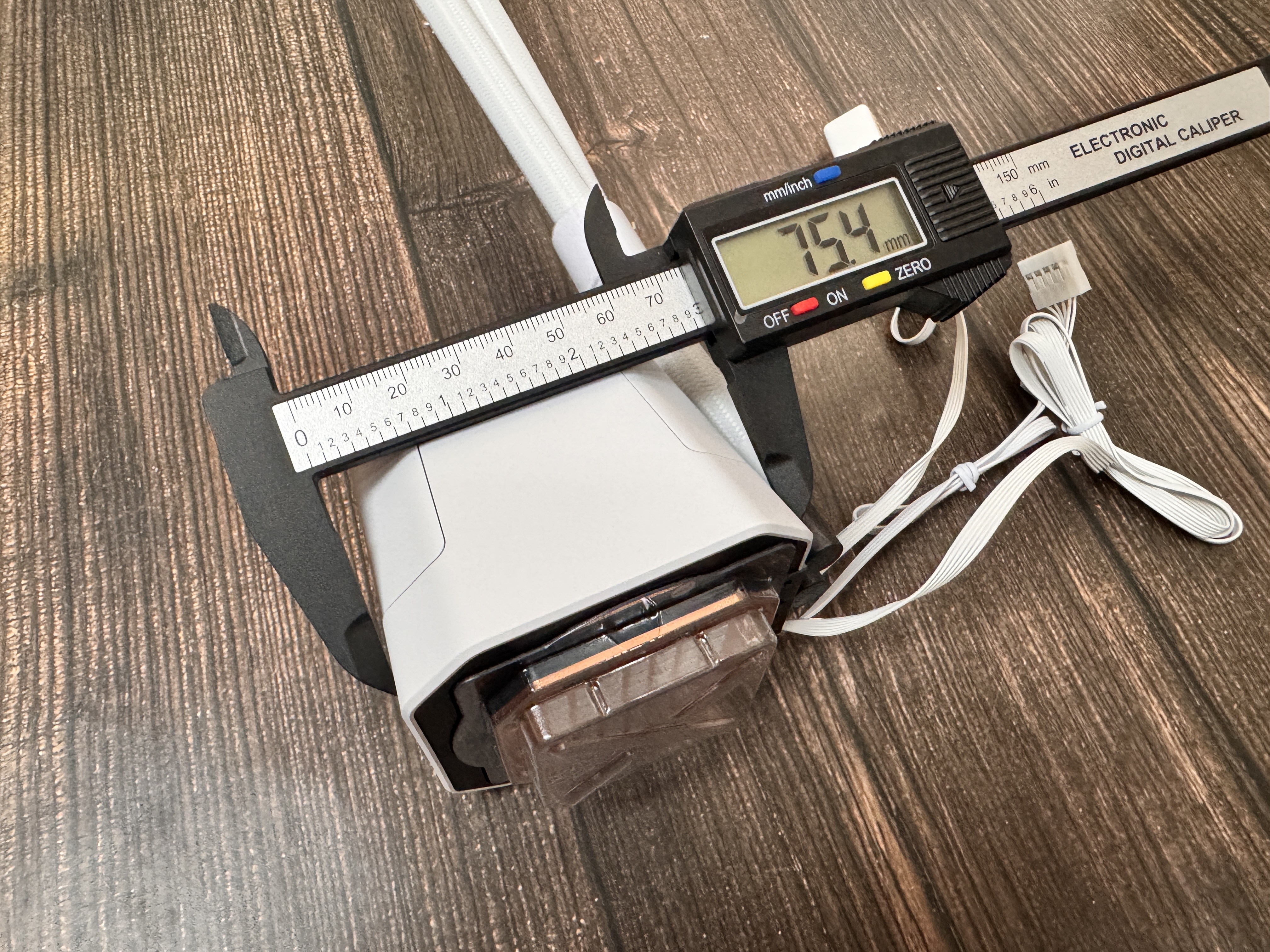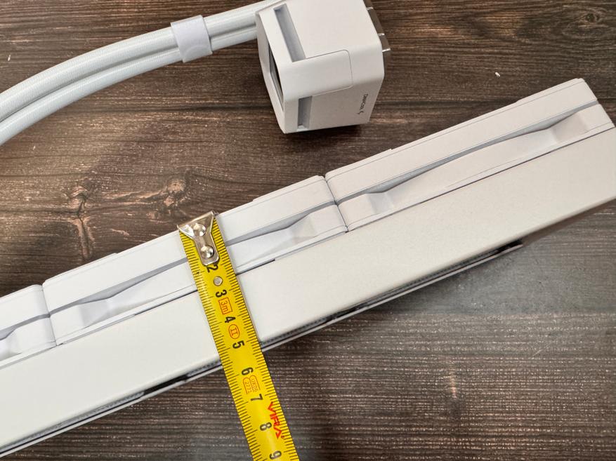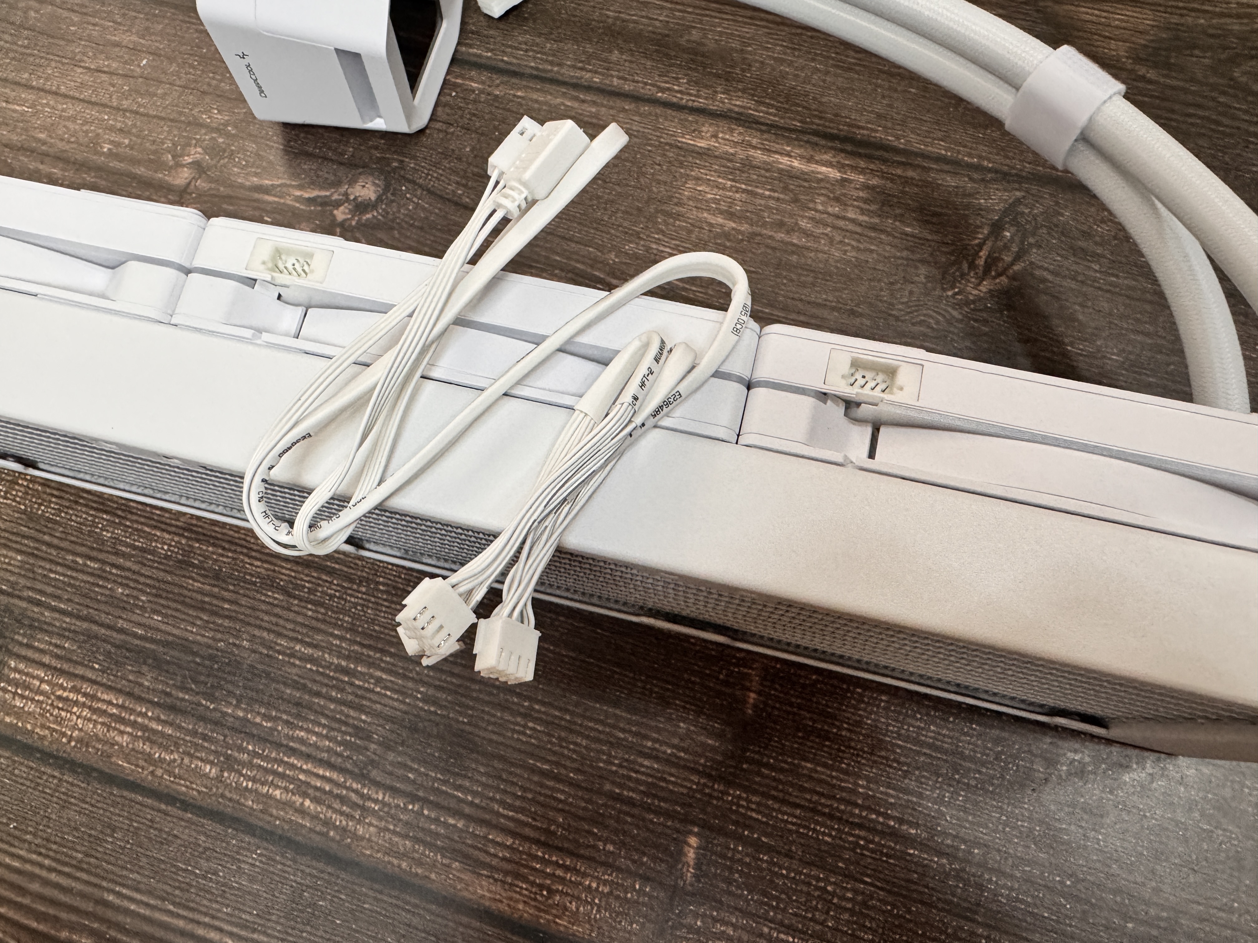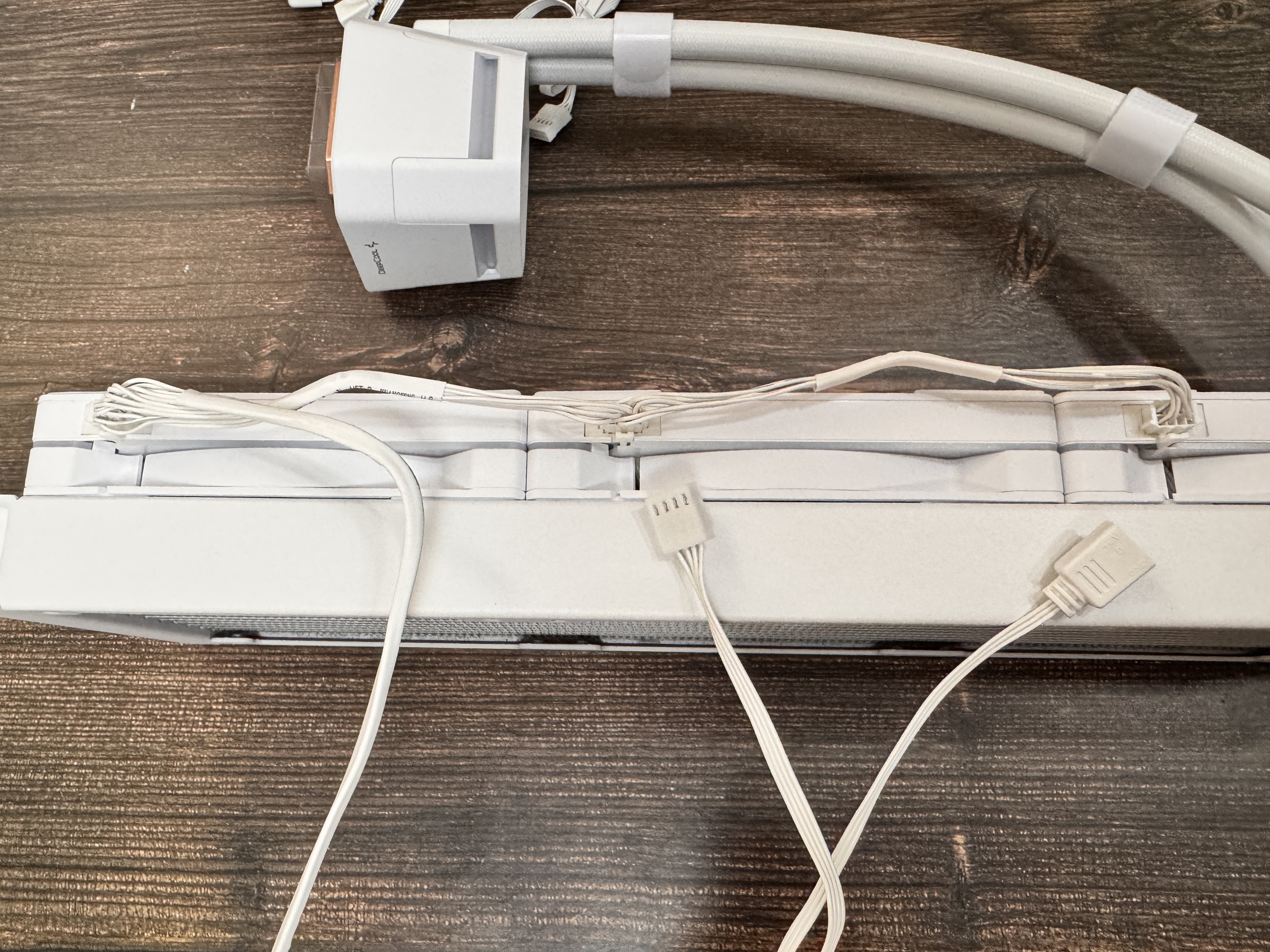 Радиатор охлаждения представлен в классическом виде и имеет Z-образным рисунок ребер. Радиатор выполнен из алюминия и имеет 12 каналов. Ребра радиатора достаточно плотно приближены друг к другу и для хорошей продувки потребуются хорошие вентиляторы с достаточным воздушным потоком. С боковой стороны имеется предохранительный клапан Anti-leak, который выравнивает внутреннее давление в системе во избежание протечек. Данный клапан имеет гарантийную пломбу, которую не рекомендуется срывать, так как гарантия при этом моментально аннулируется. Для соединения радиатора и помпы используются стандартные шланги в тканевой оплетке. Фитинги используются металлические, как и обжимные кольца. В комплекте с СЖО имеются две мягкие стяжки с липучкой, которые используются для фиксации шлангов. Вентиляторы подключаются последовательно при помощи 7 PIN разъема, а затем при помощи 4 PIN разъема к материнской плате. Белоснежные вентиляторы FL12 SE работают на гидродинамическом подшипнике и имеют регулировку оборотов от 400~2400 об/мин. Вентиляторы обеспечивают хороший воздушный поток 66,23 куб/мин.