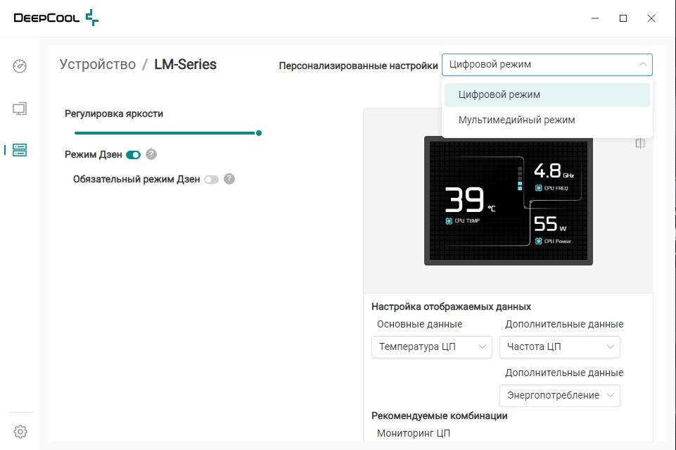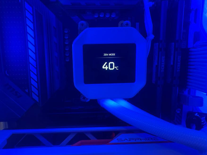 Отображение параметров может осуществляться как в горизонтальном, так и в вертикальном положении, что в свою очередь позволяет пользователю установить водоблок любой стороной. На дисплеи может отображаться полная информация о процессоре или видеокарте или можно включить режим «Zen», — который будет отображать только температурные показатели.